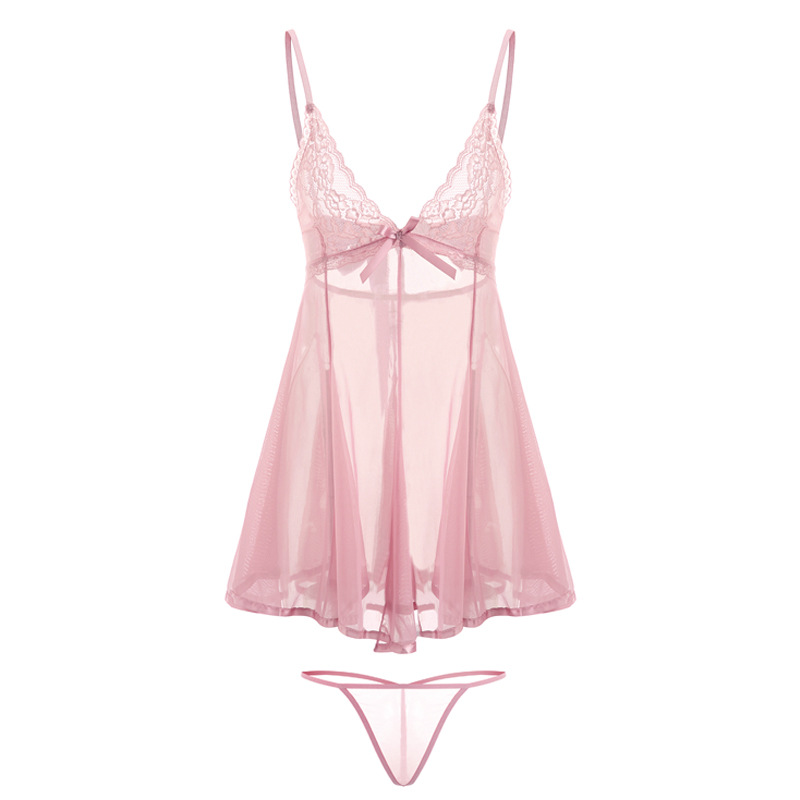 Bowknot Espalda Bonita Lencería Sexy Camisón Tanga