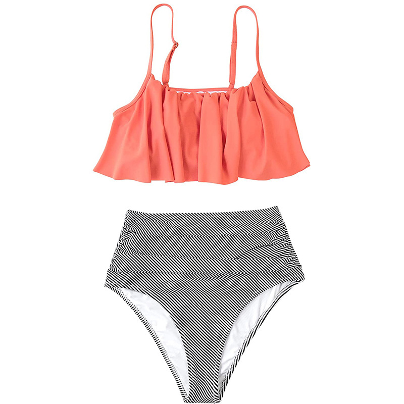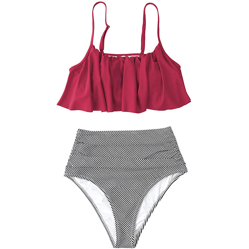 Conjunto de bikini con cubierta de vientre con volantes pequeños y sexy dividido clásico para mujer