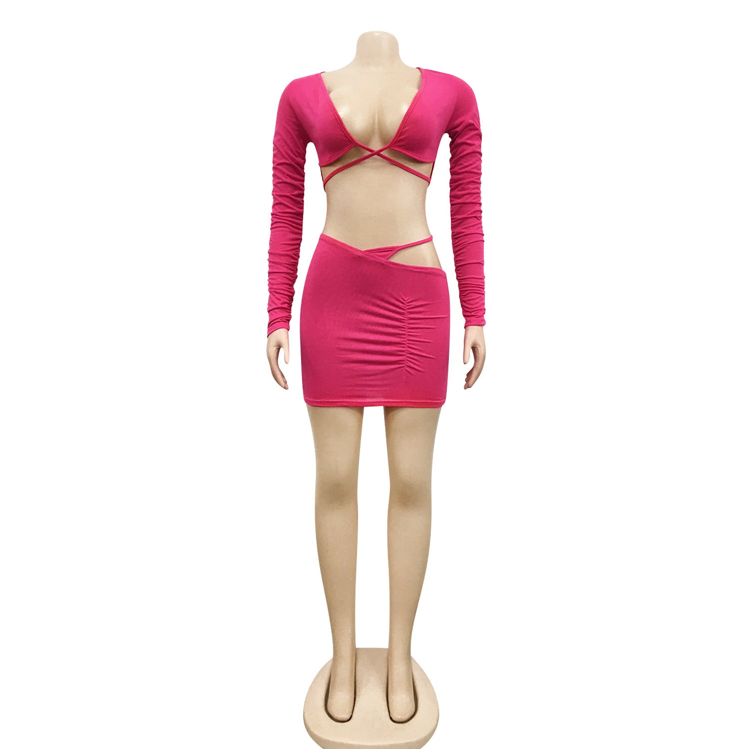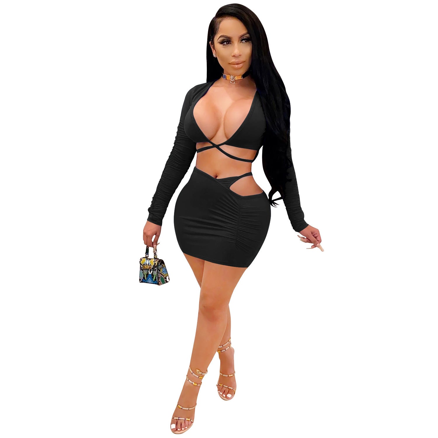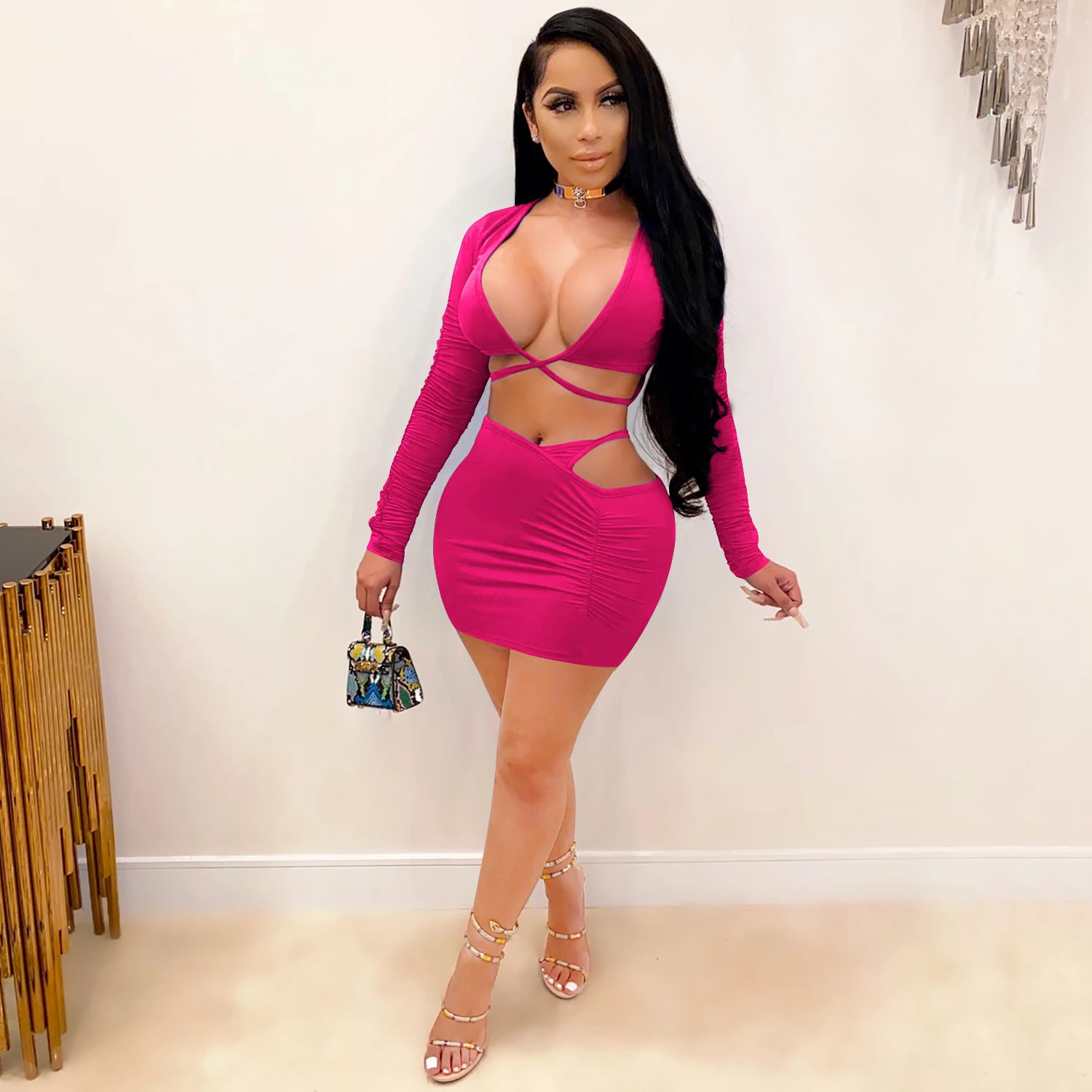 Cutubly Solid Suit Outfit Sexy Two Piece Set Women Deep