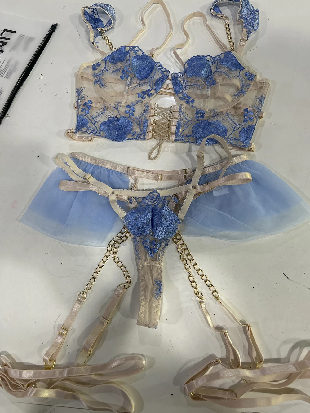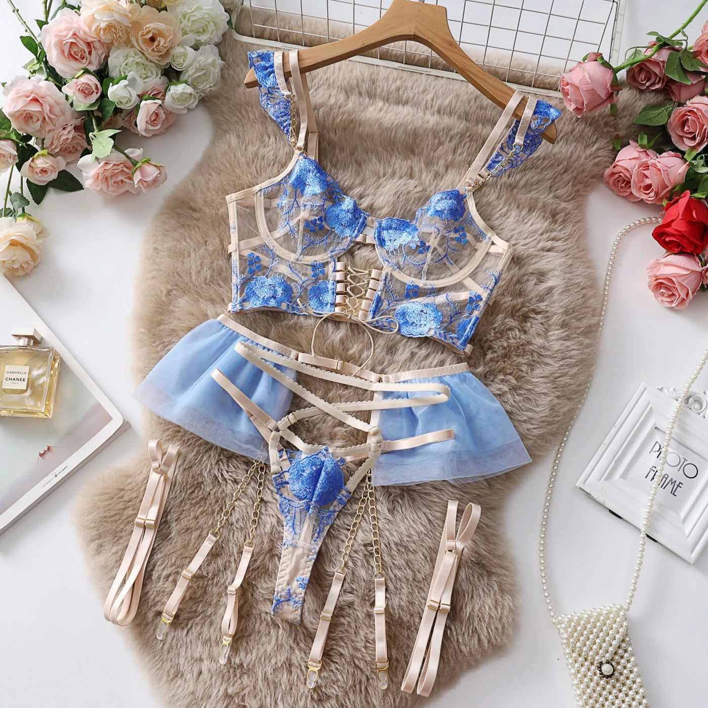 Fancy Lingerie Hot y Hermosa Ropa Interior Traje Traje Floral Lujo Íntimo Femenino Sin Censura