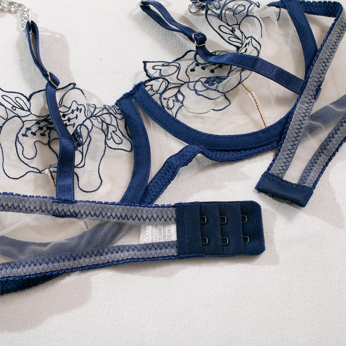 Lencería floral Ropa interior de fantasía Conjuntos íntimos de lujo con bordado transparente de encaje y sujetadores push-up