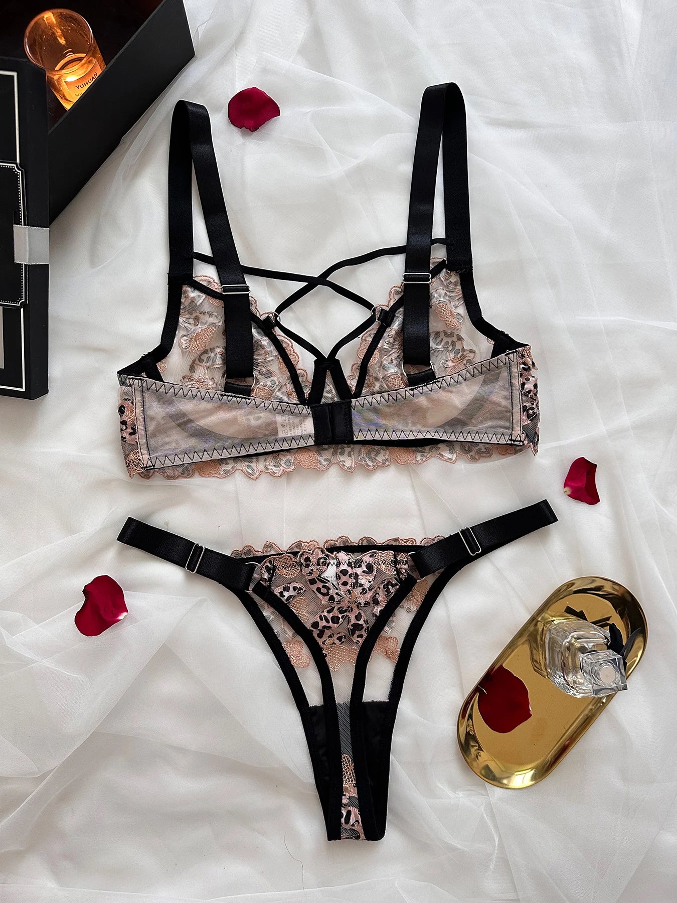 Lencería floral Ropa interior de encaje Trajes transparentes de Bilizna Traje de sujetador cruzado de buena calidad