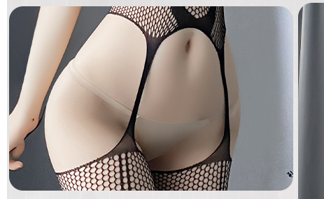 Mono todo en uno con liguero de malla ahuecado a rayas de Fun Lingerie