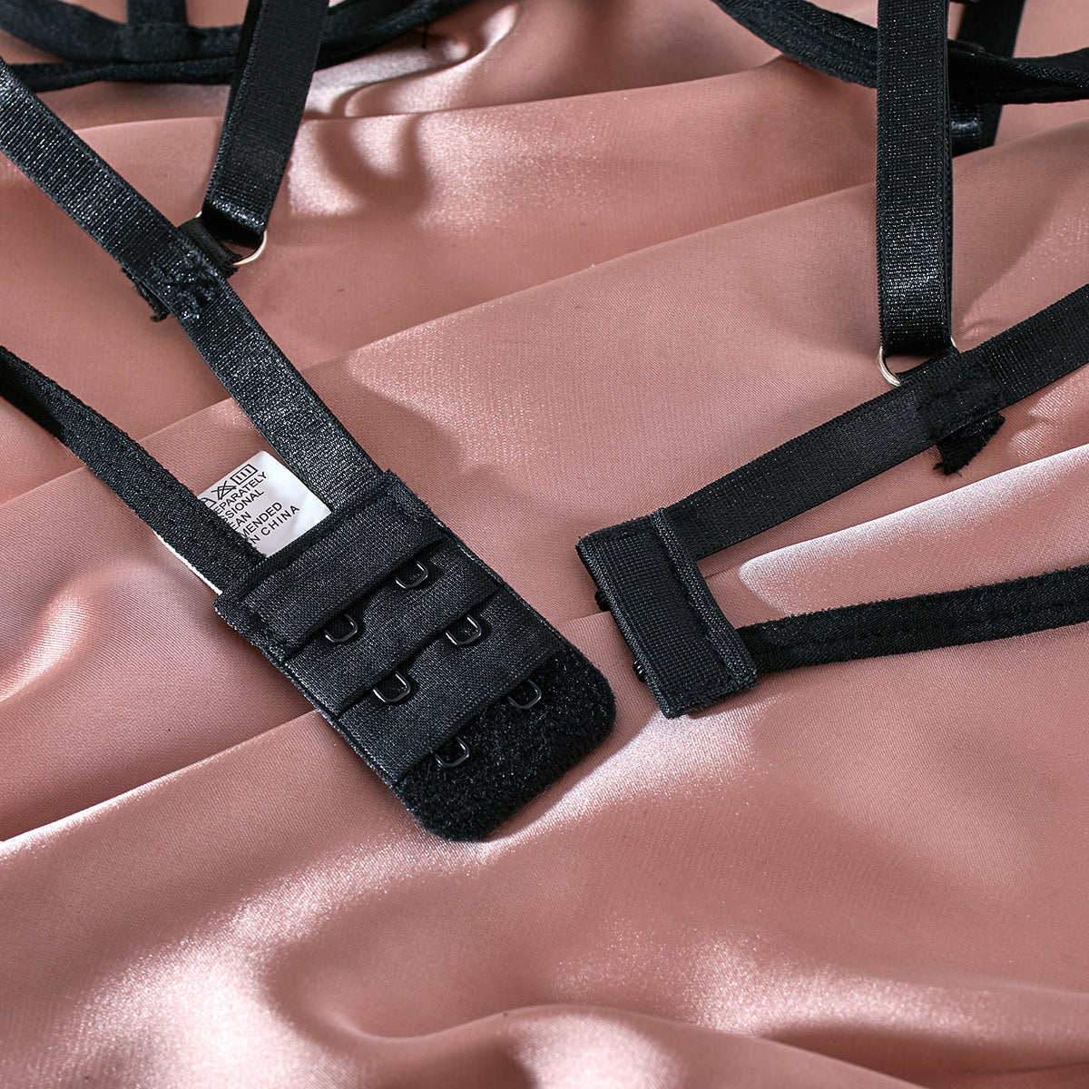 Conjunto de tres piezas de lencería con anillo de acero y tirantes huecos con faja