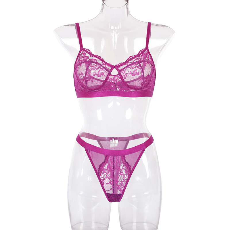 Conjunto de lencería sexy de encaje sin aro de acero.