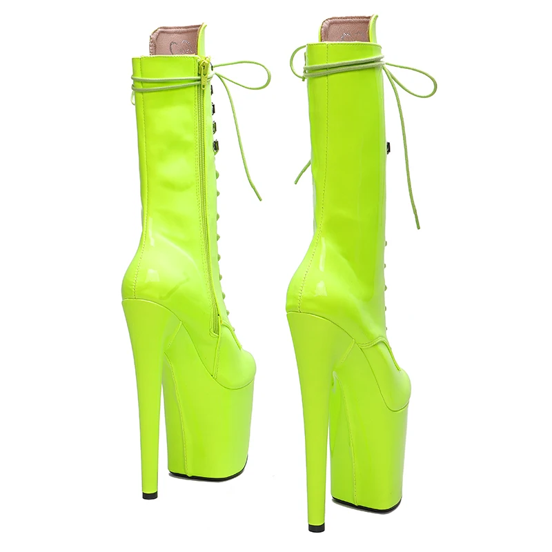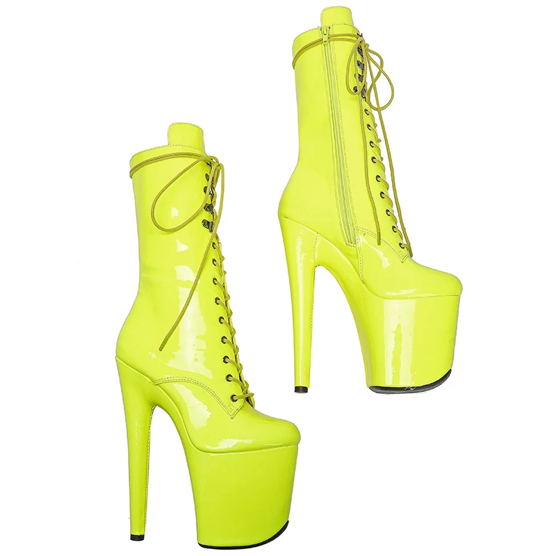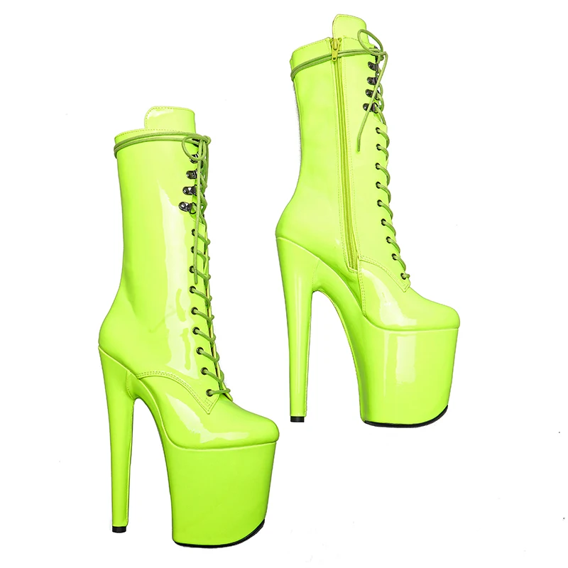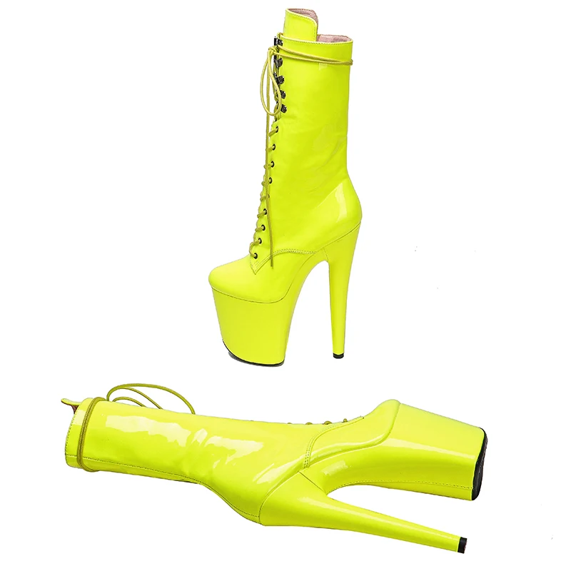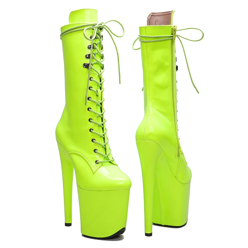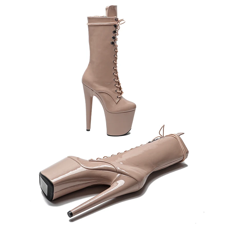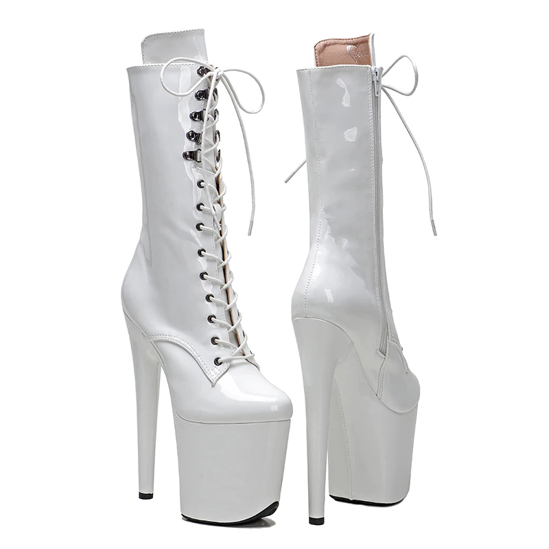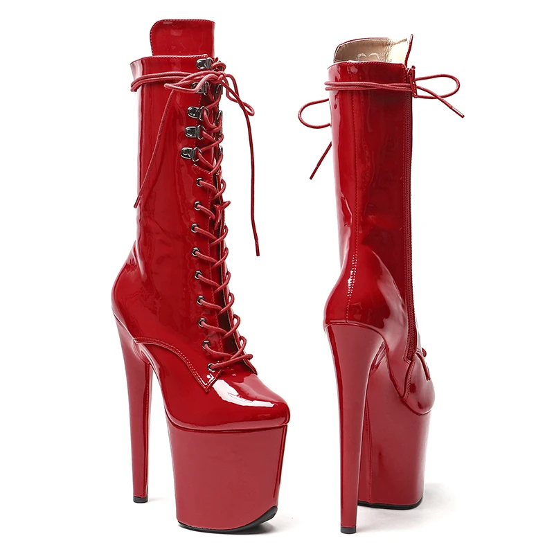 Botas de moda para mujer con parte superior de charol brillante de 20CM/8 pulgadas para fiesta, plataforma, tacones altos, bota de baile en barra