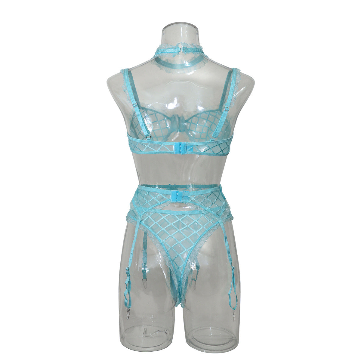 Lencería de rejilla grande para mujer, traje Sexy con cinturón, babero bordado, ahuecado