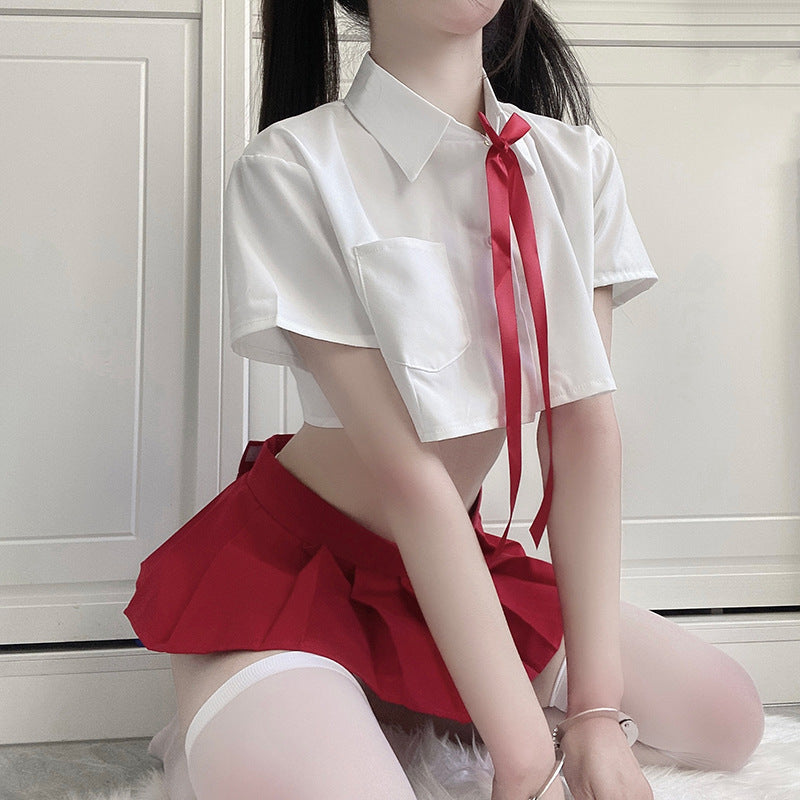 Red Luck Limited [Top + Nudo de cinta + Falda corta] + Media blanca = Suerte roja limitada