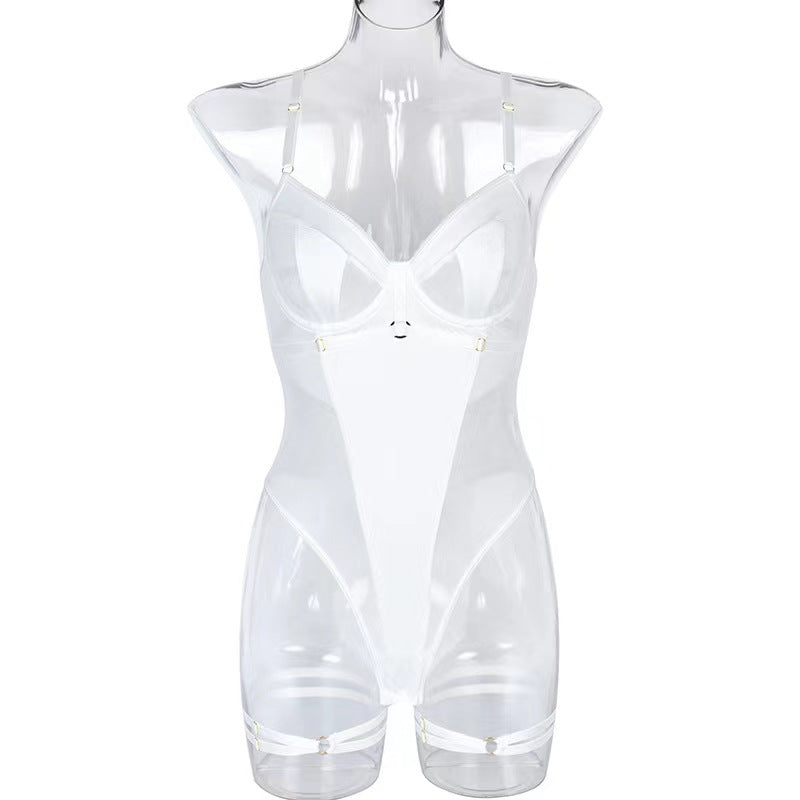 Mono sin mangas con cordones sexy sin espalda cosido de malla