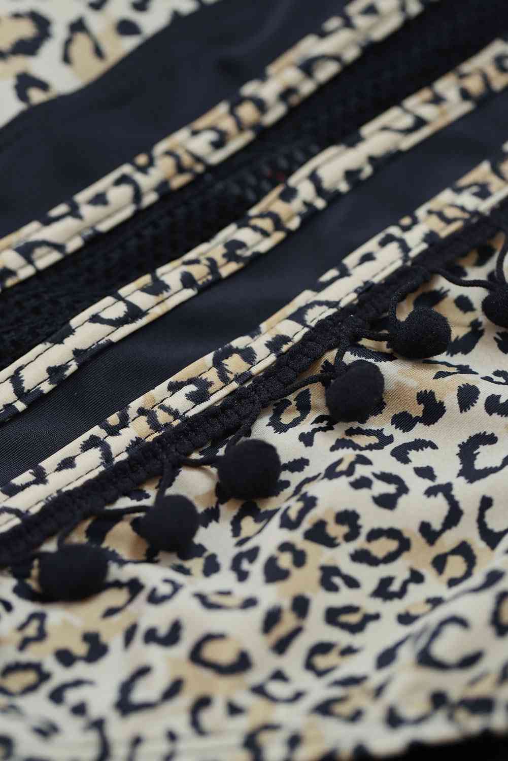 Conjunto de bikini de dos piezas con cuello halter y detalle de pompón estampado