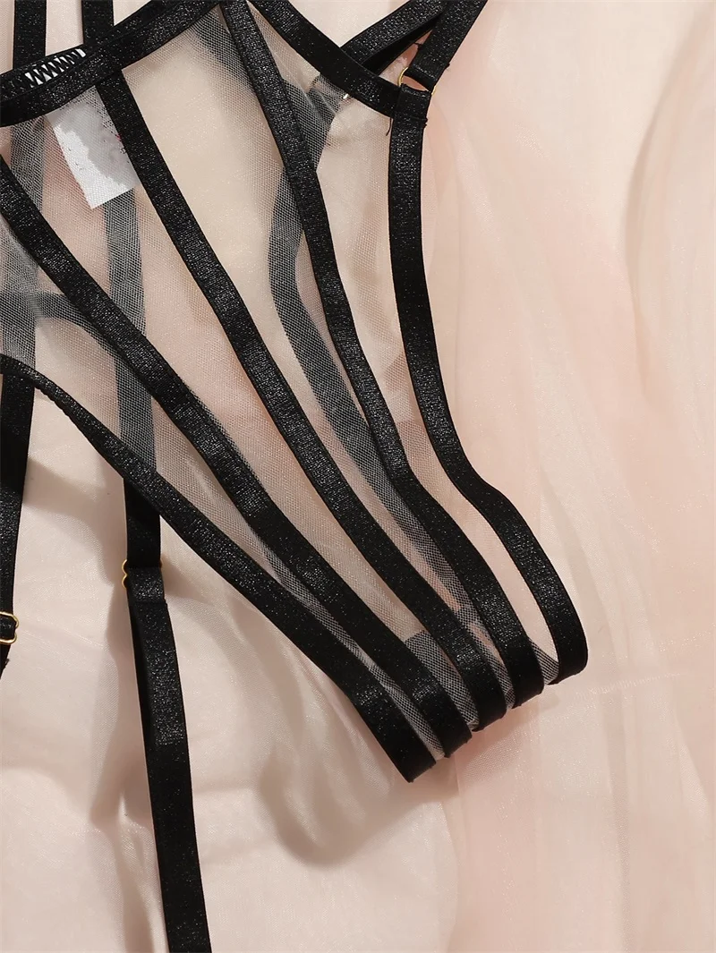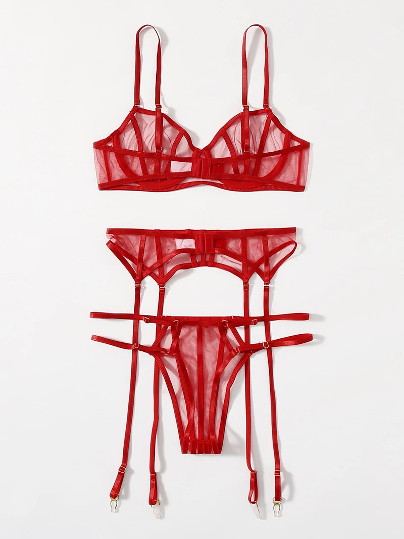 Lencería sexy, disfraces exóticos, conjunto de realce para mujer, 3 piezas, lencería con aros, conjunto de ropa interior transparente íntima