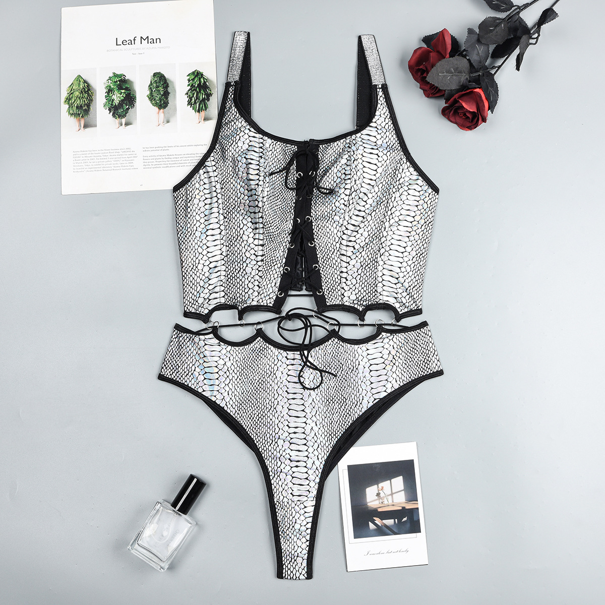 Traje sexy de piel de serpiente, ropa interior cruzada sexy con cordones, desmontaje, ropa bidireccional, traje novedoso