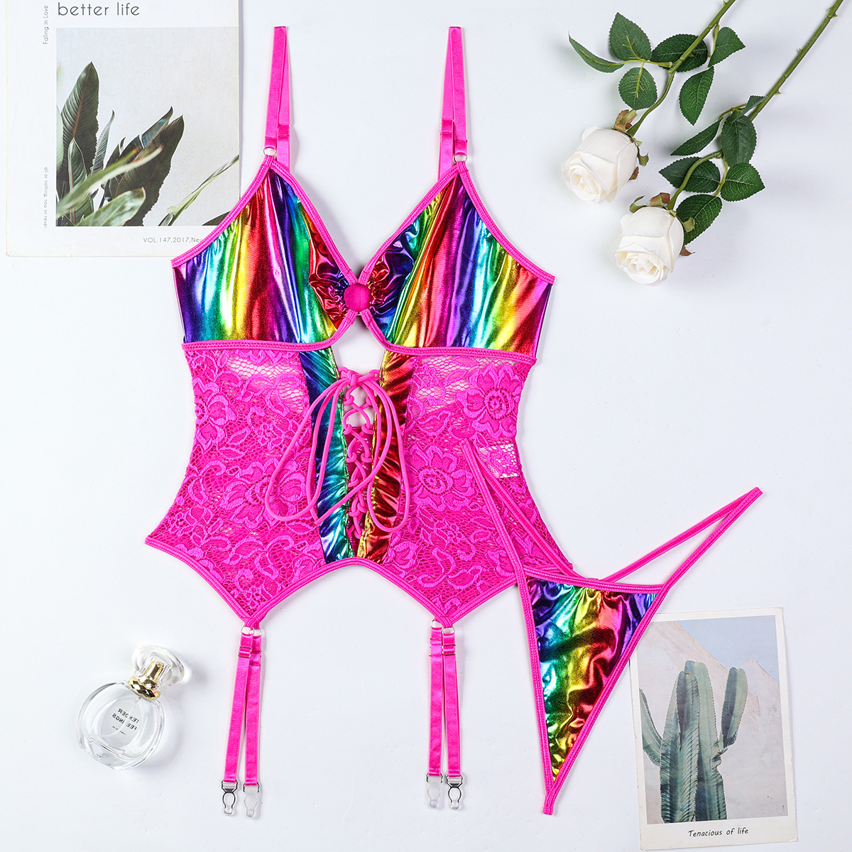 Sexy Underwear Flash Gradient Color Cross Strap Suspenders Two Piece Sets