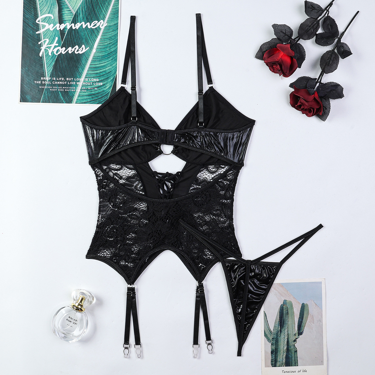 Element: Backless,Cutout,Lace up,Ring,hook closure,Lace/Tulle/Fishnet,Patchwork