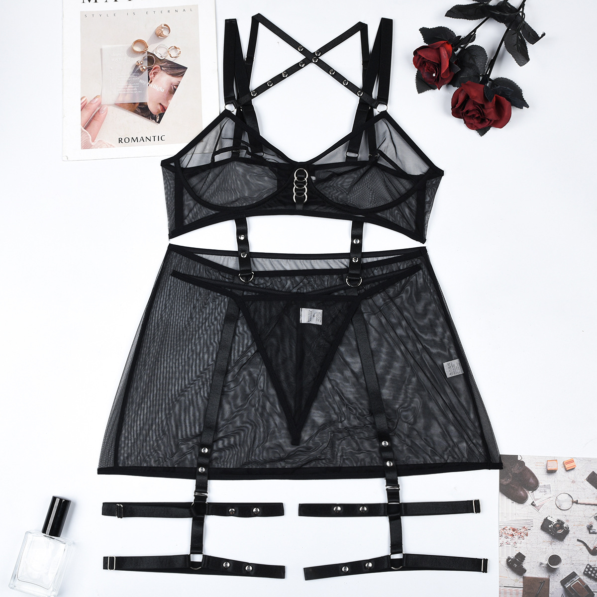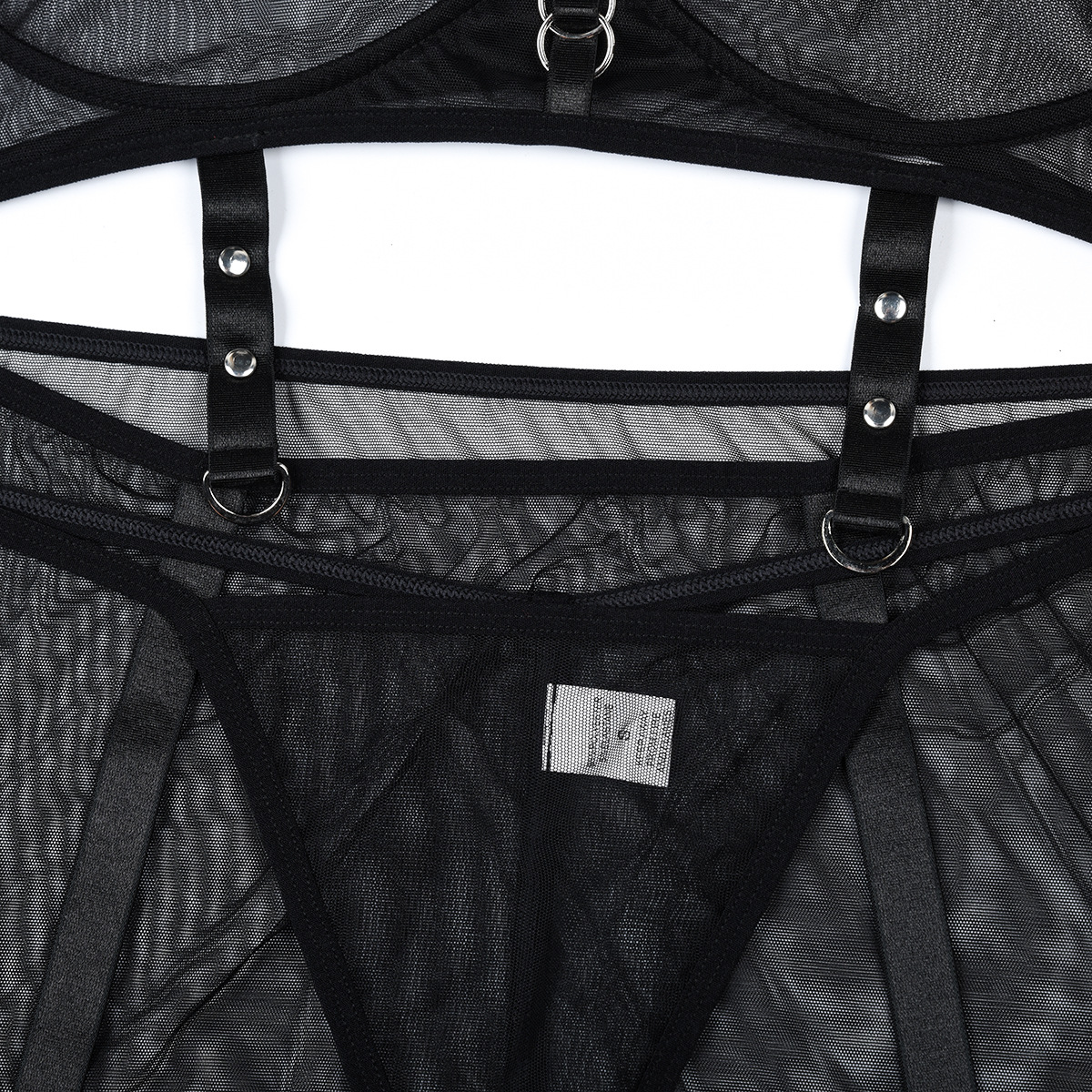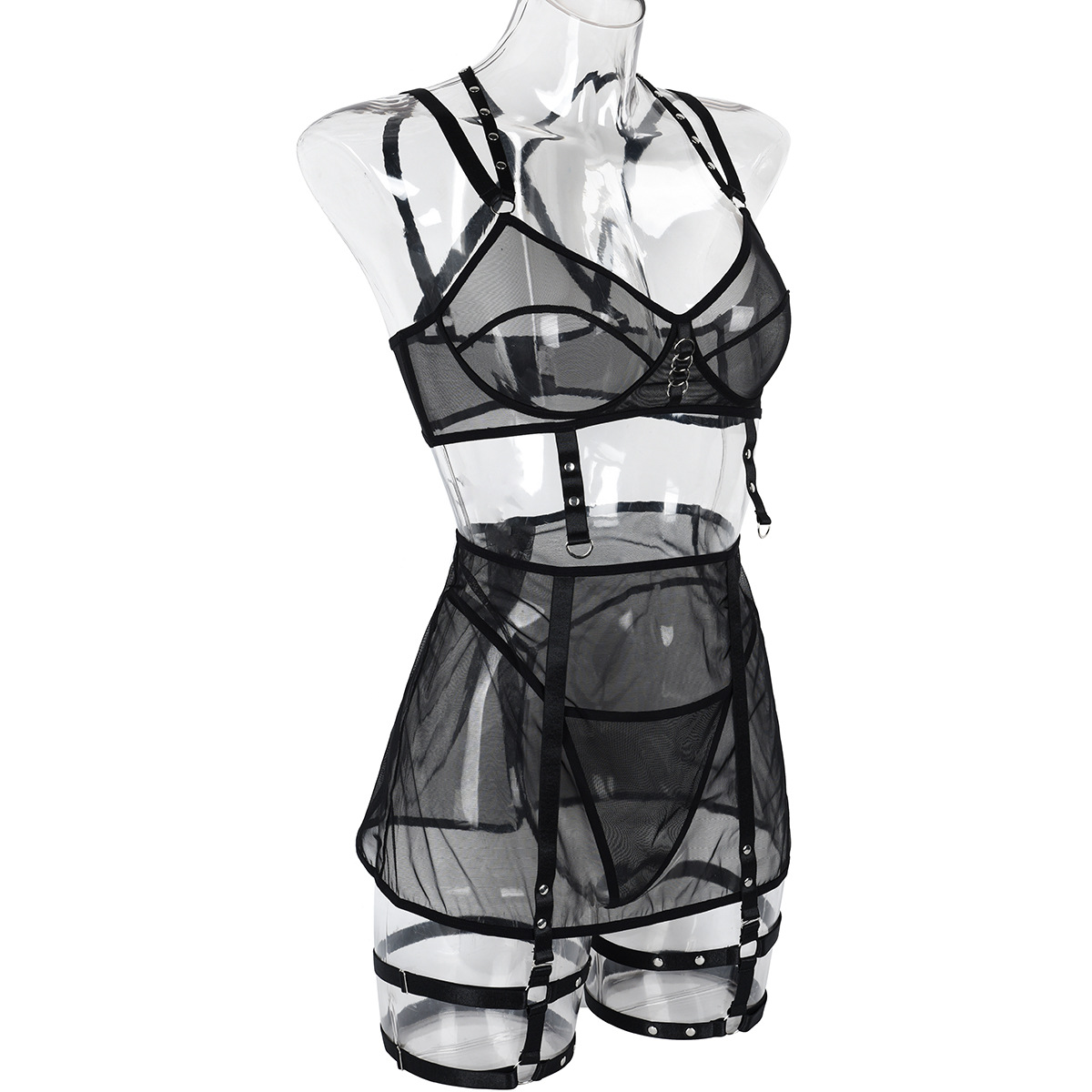 Ropa interior sexy falda transparente de tres puntos remache industrial pesado hecho a mano sexy