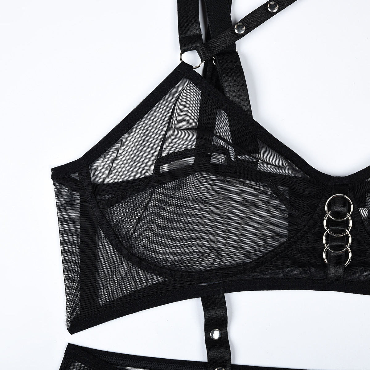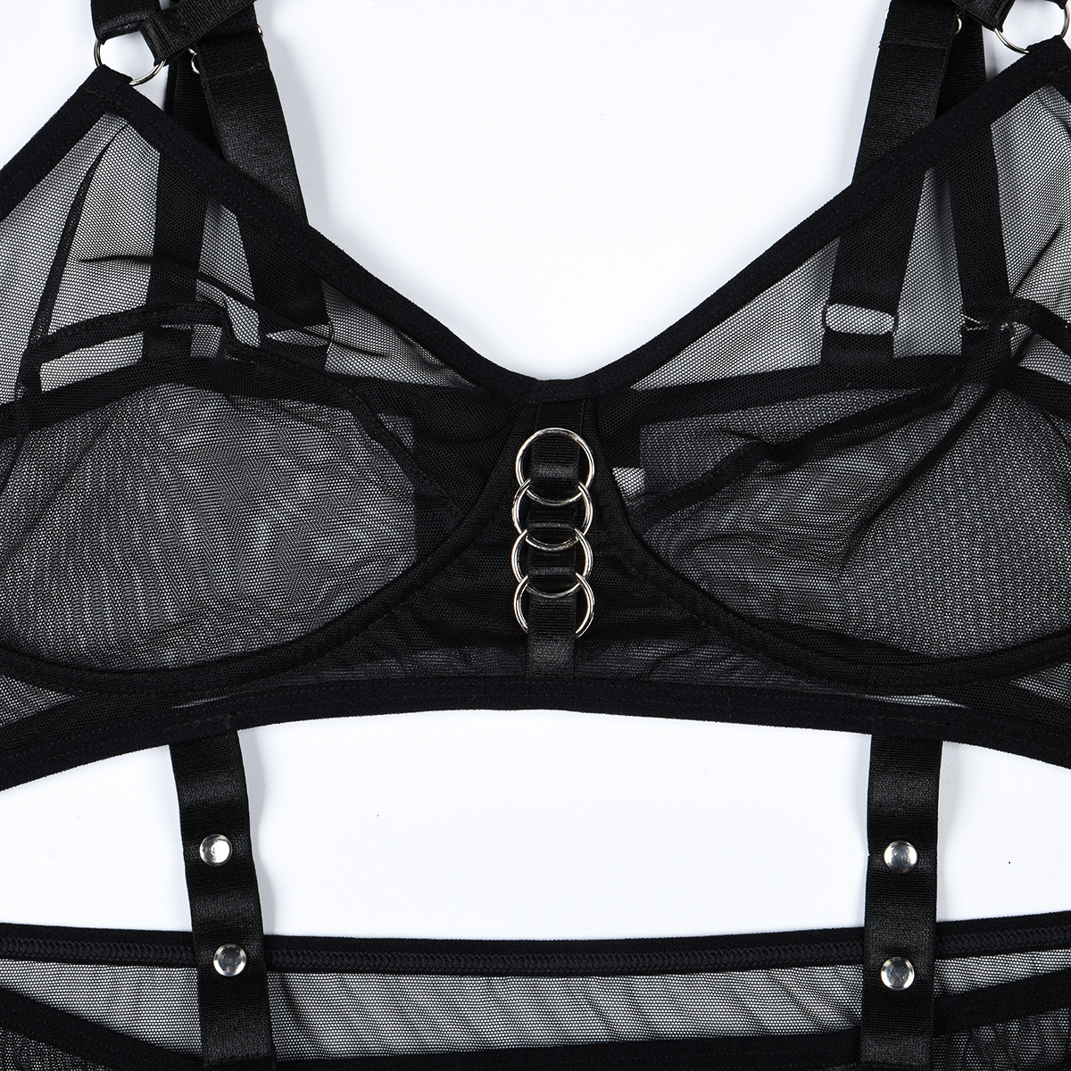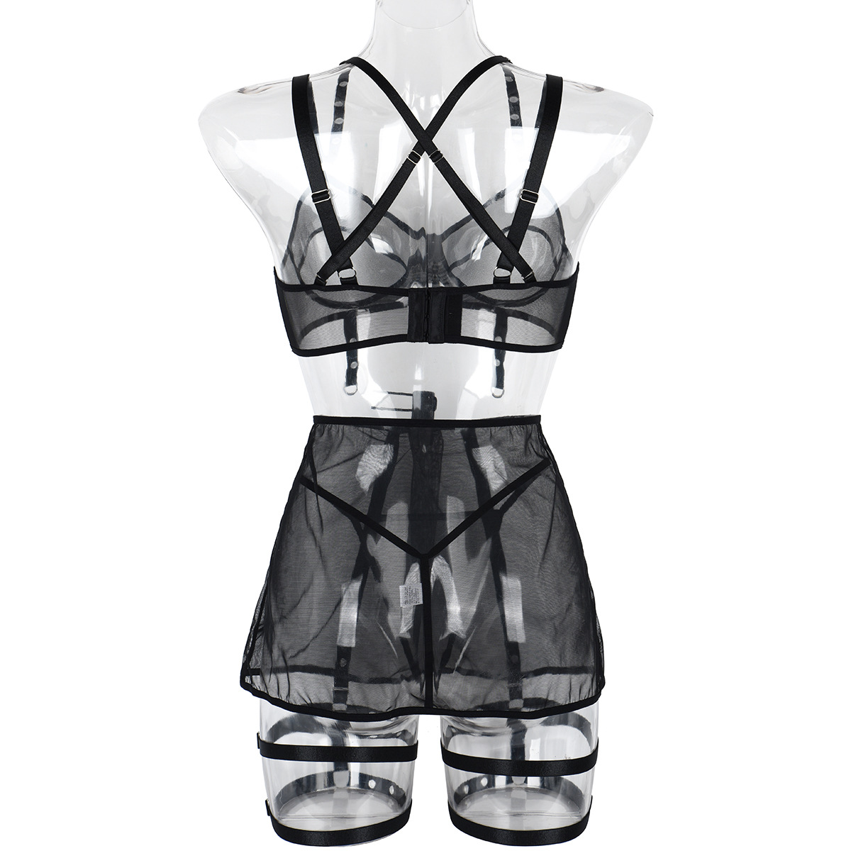 Ropa interior sexy falda transparente de tres puntos remache industrial pesado hecho a mano sexy