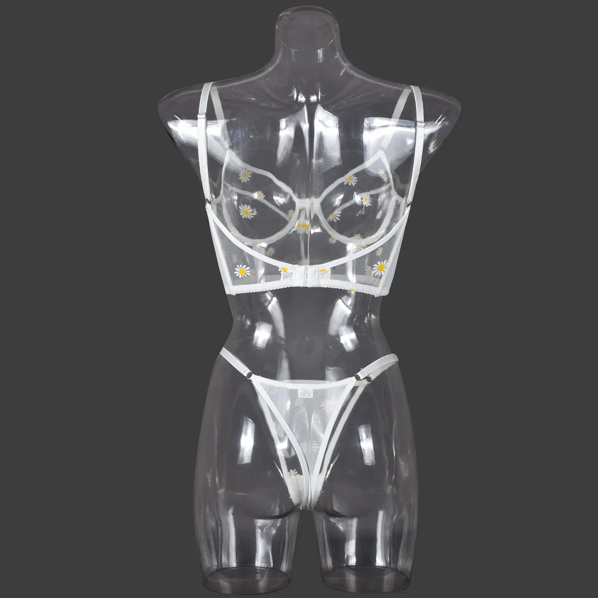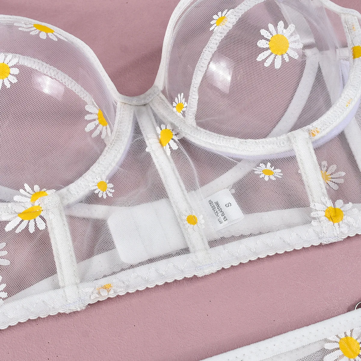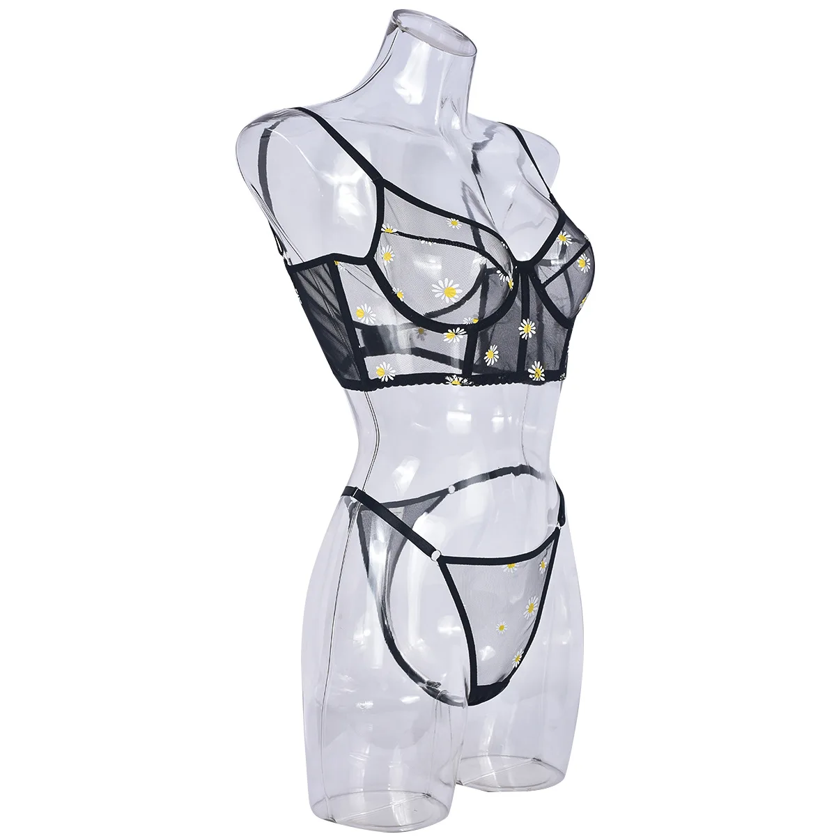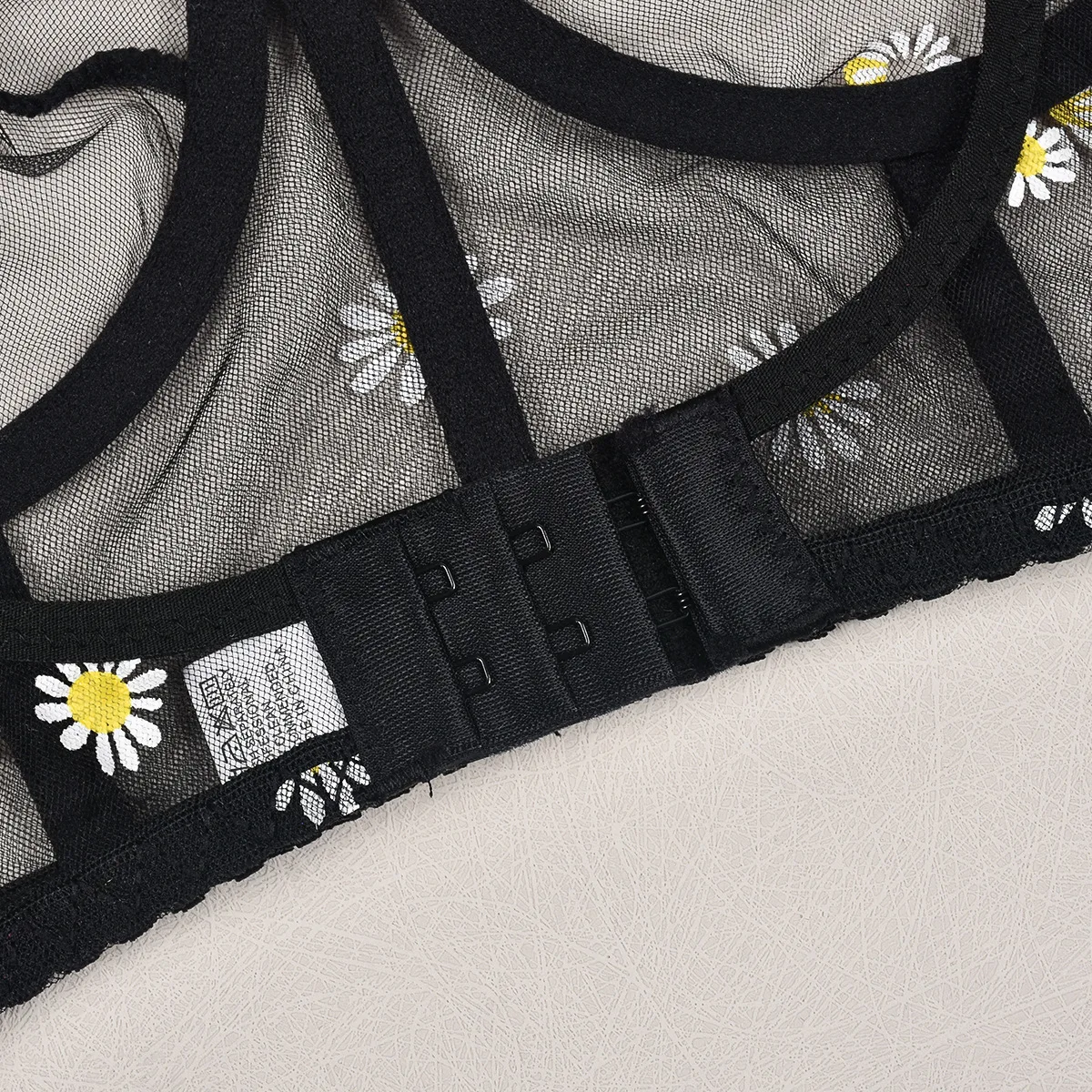 Conjunto íntimo de lencería floral transparente, traje bordado, ropa interior de encaje, conjunto Bilizna de tul de fantasía