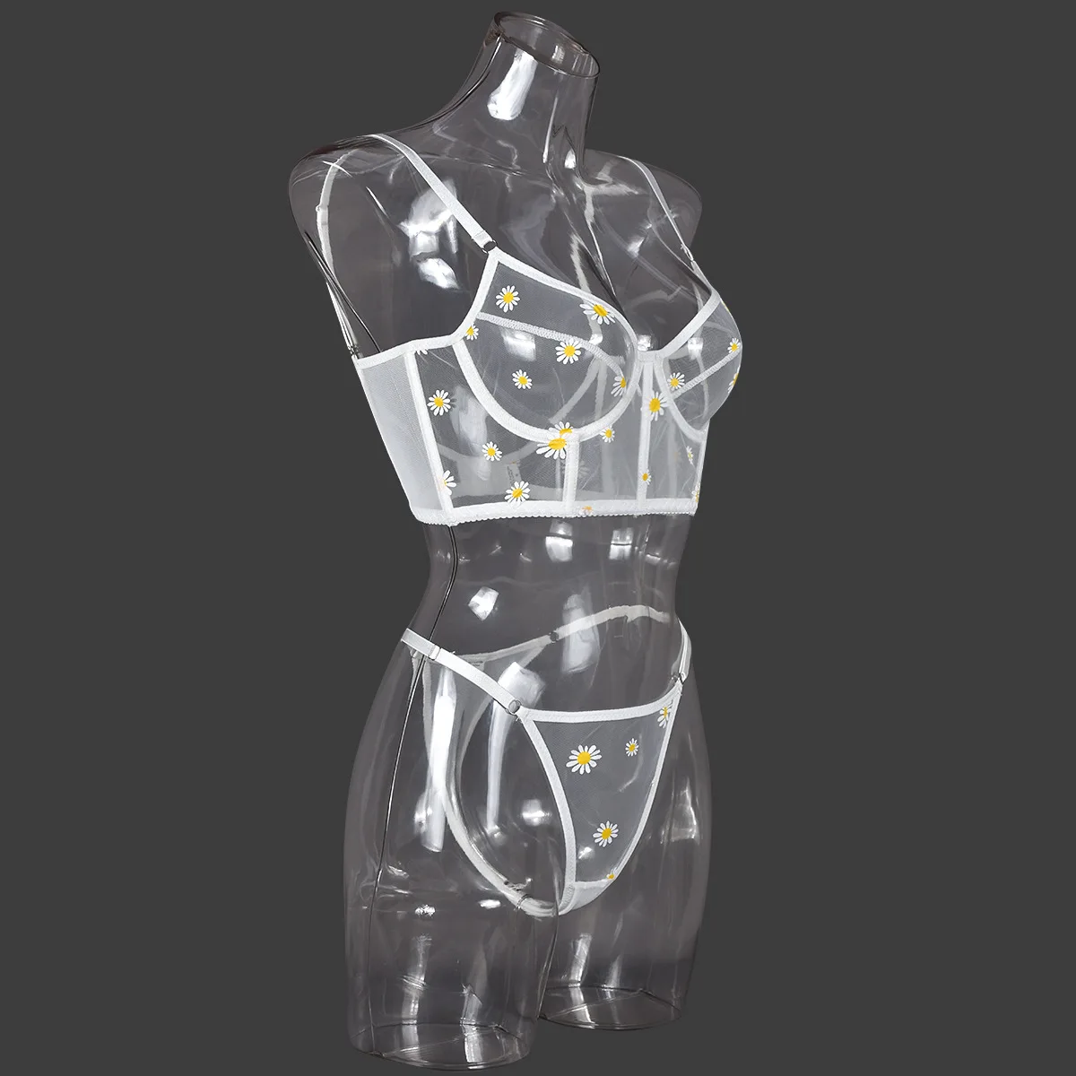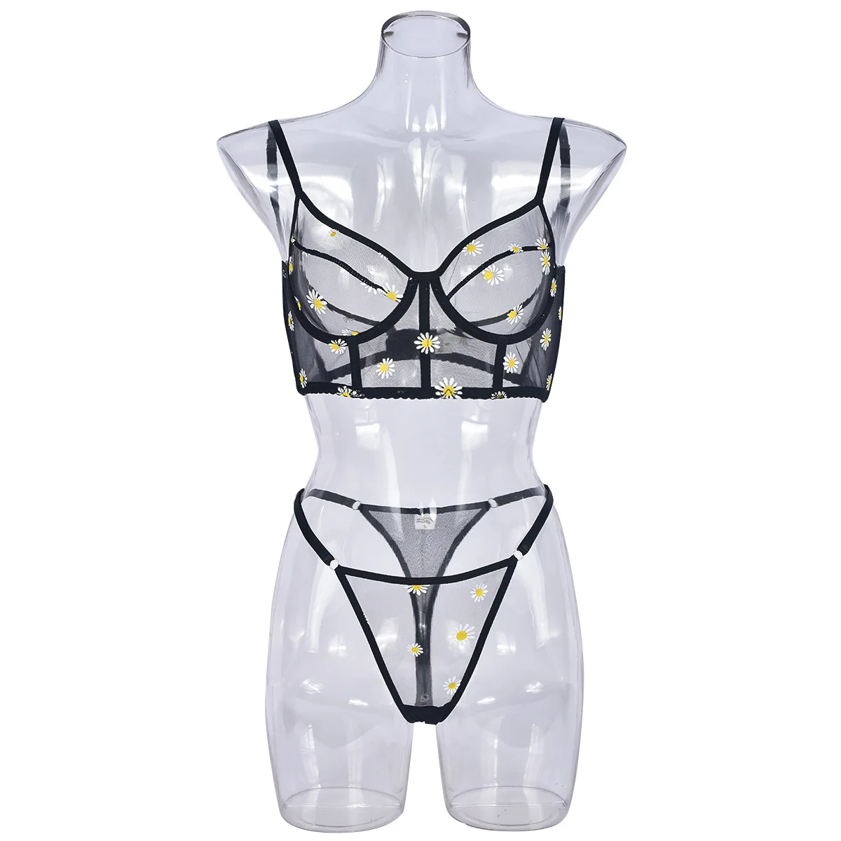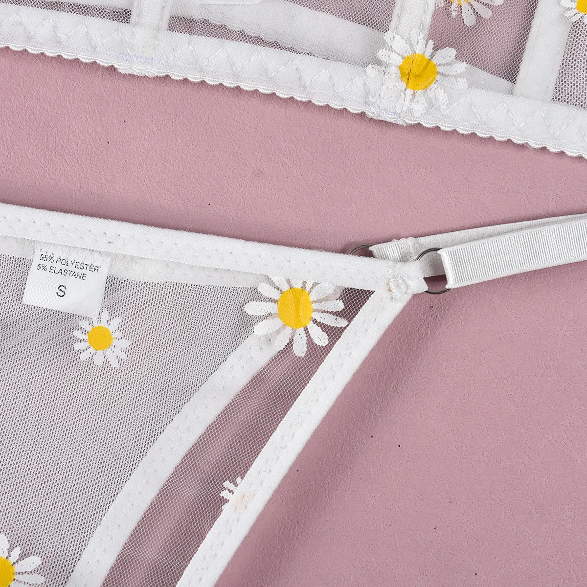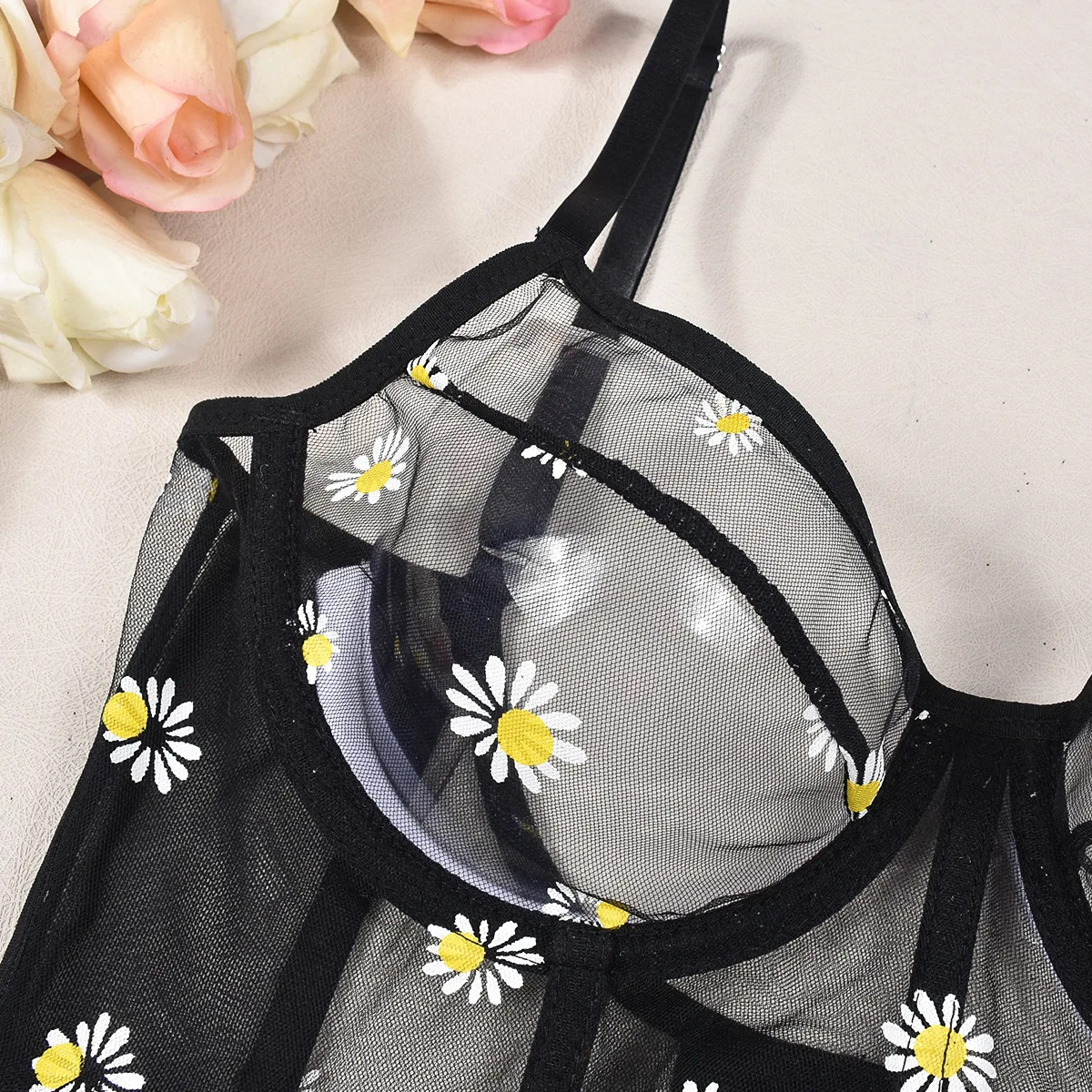 Conjunto íntimo de lencería floral transparente, traje bordado, ropa interior de encaje, conjunto Bilizna de tul de fantasía