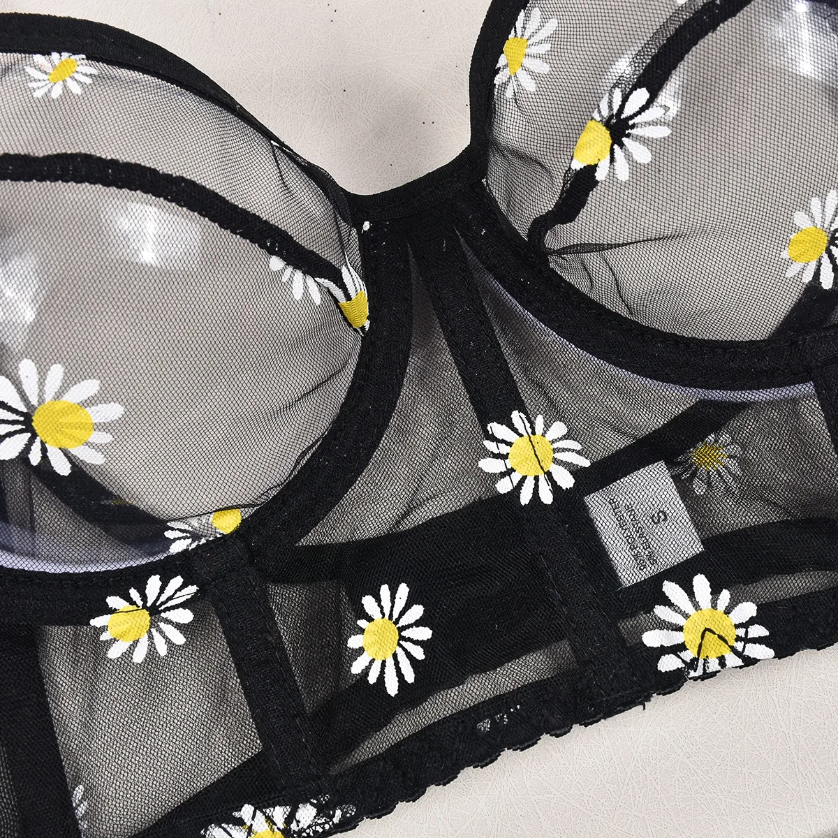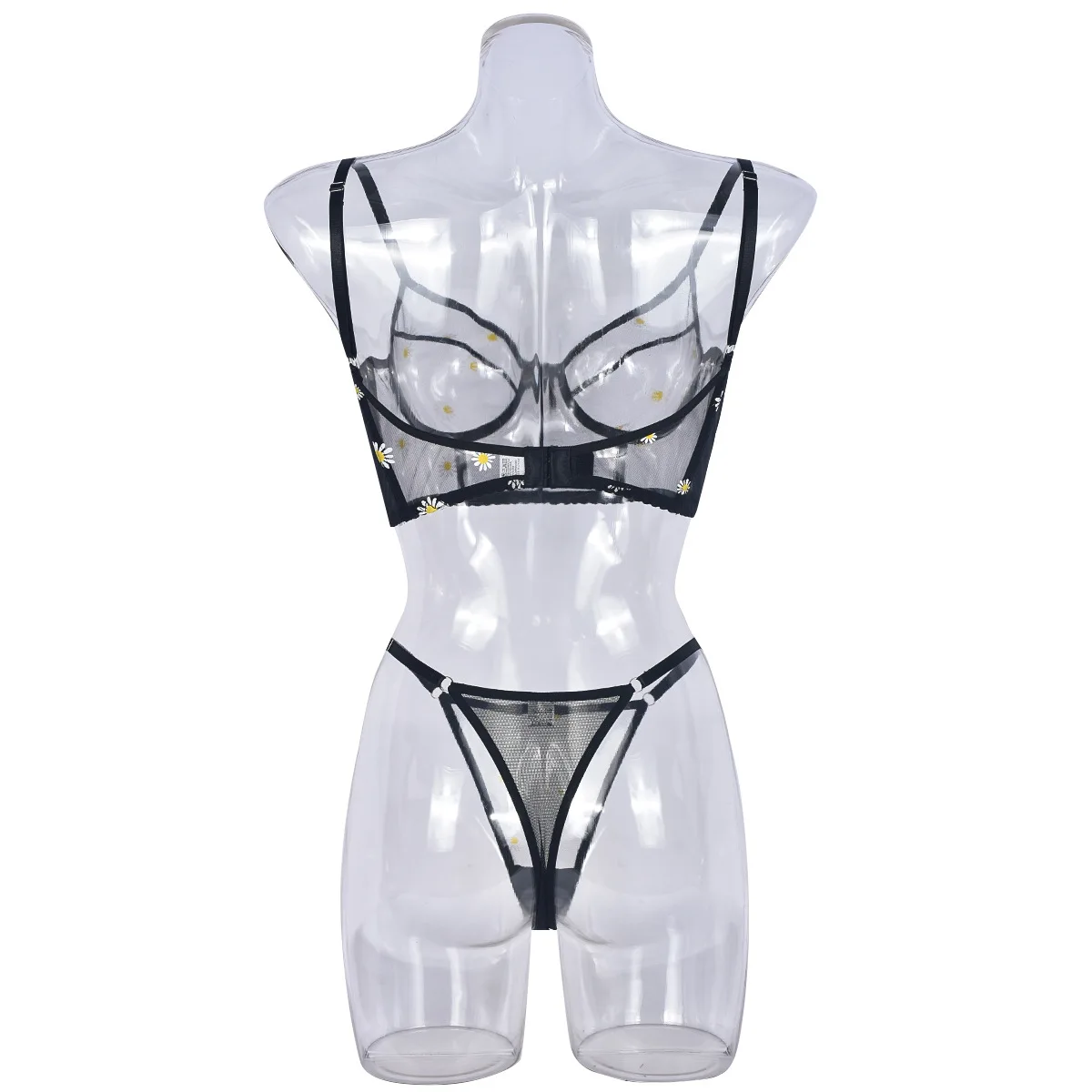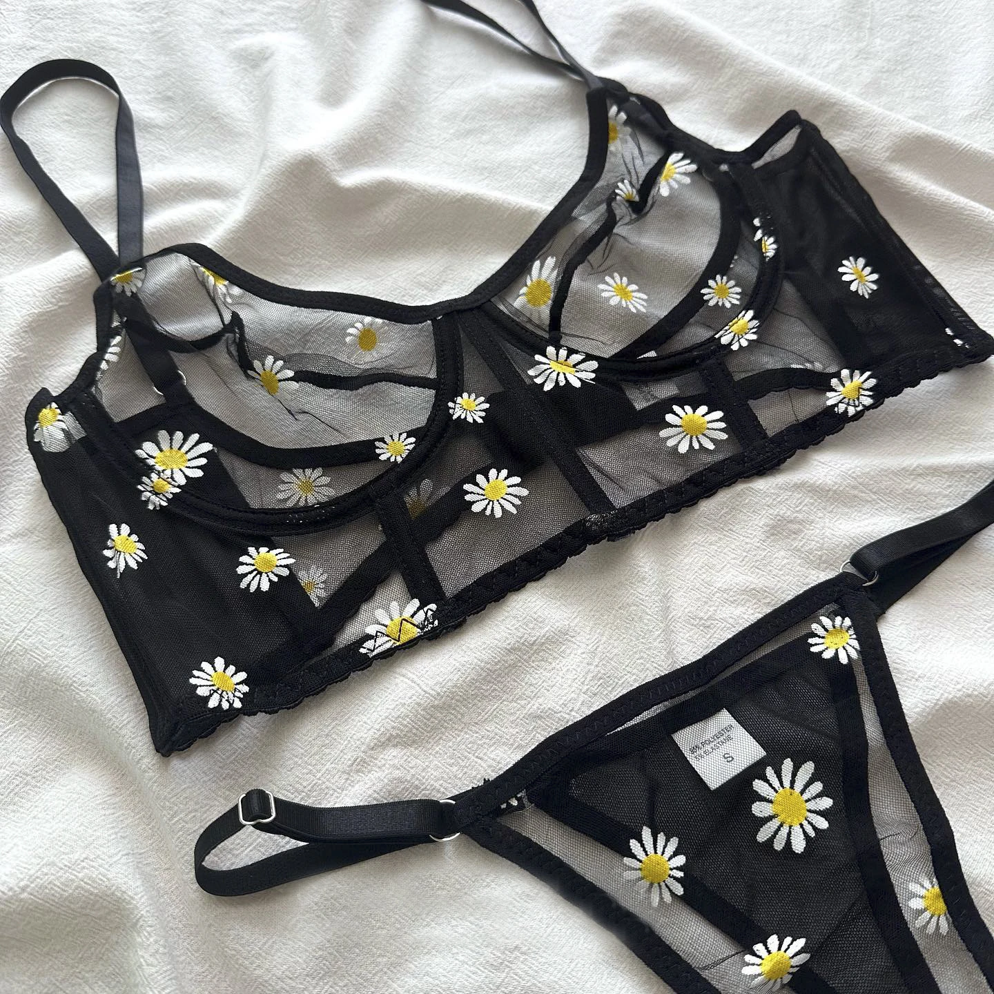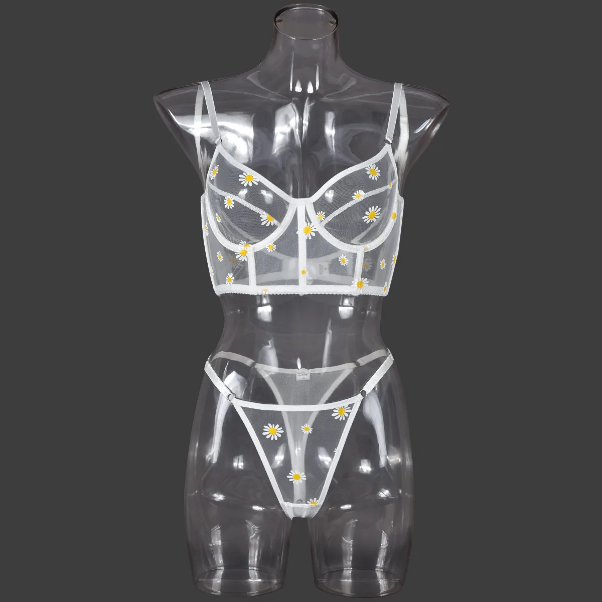 Conjunto íntimo de lencería floral transparente, traje bordado, ropa interior de encaje, conjunto Bilizna de tul de fantasía