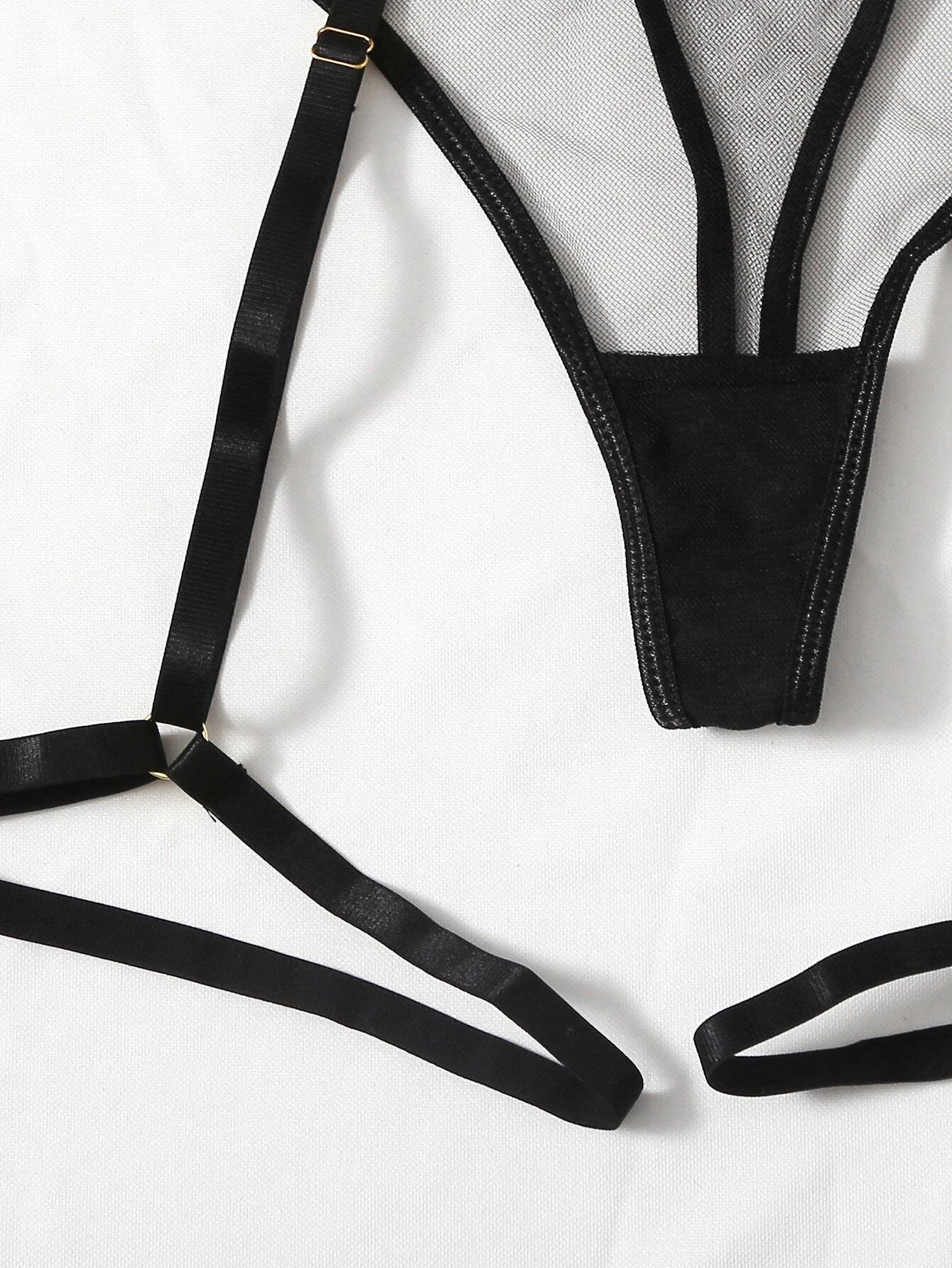 Traje de patrón hueco de encaje francés de lencería ultrafina de tres puntos