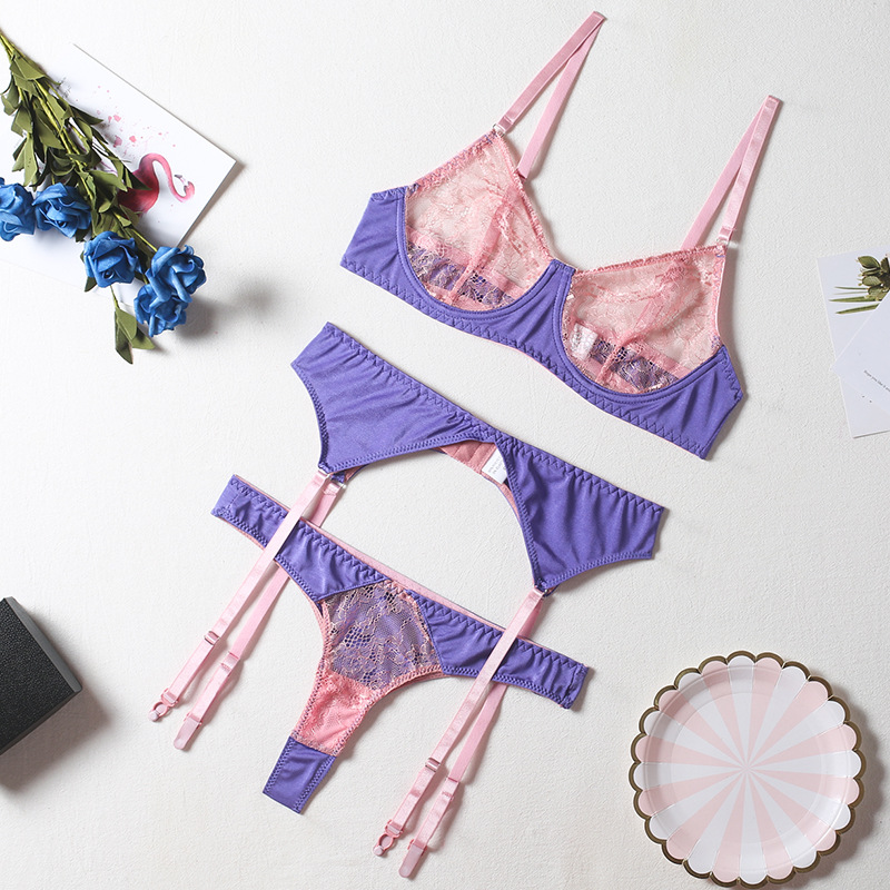 Conjunto de tres piezas de lencería tipo tanga para mujer con anillo de acero