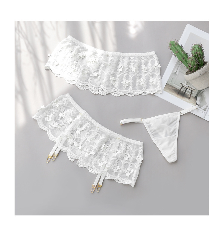 Haut tubulaire étoile magnifiquement brodé, lingerie sexy trois pièces en maille à une épaule dénudée