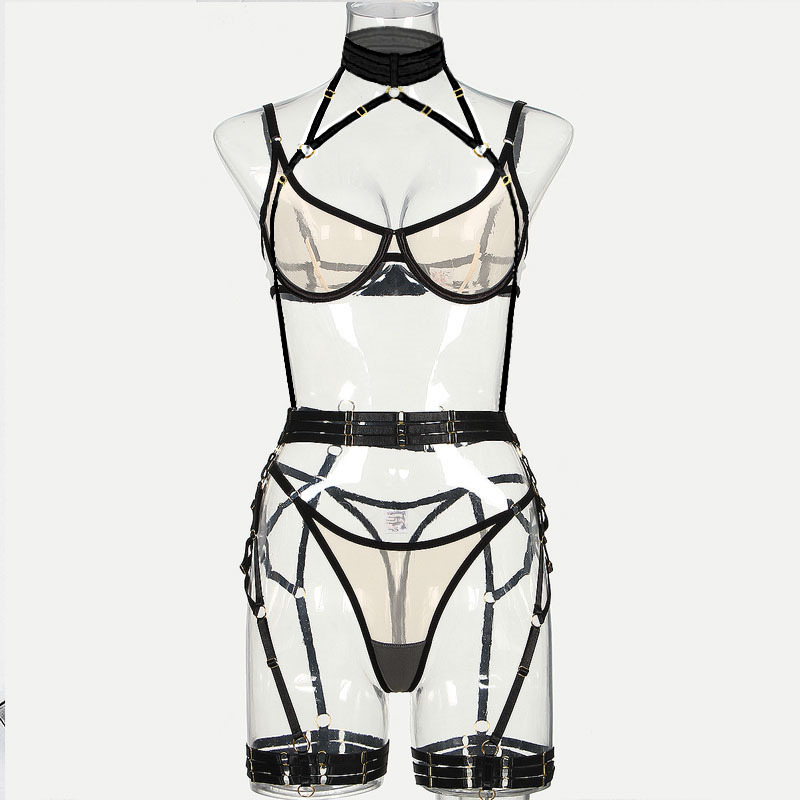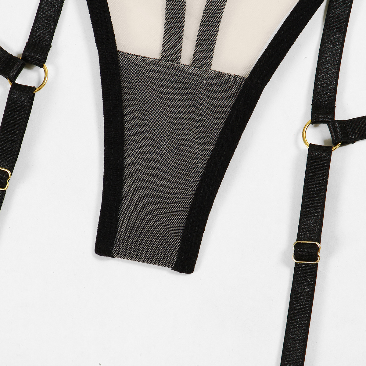 Ensemble de quatre pièces de sous-vêtements sexy transparents en maille complexe Craft
