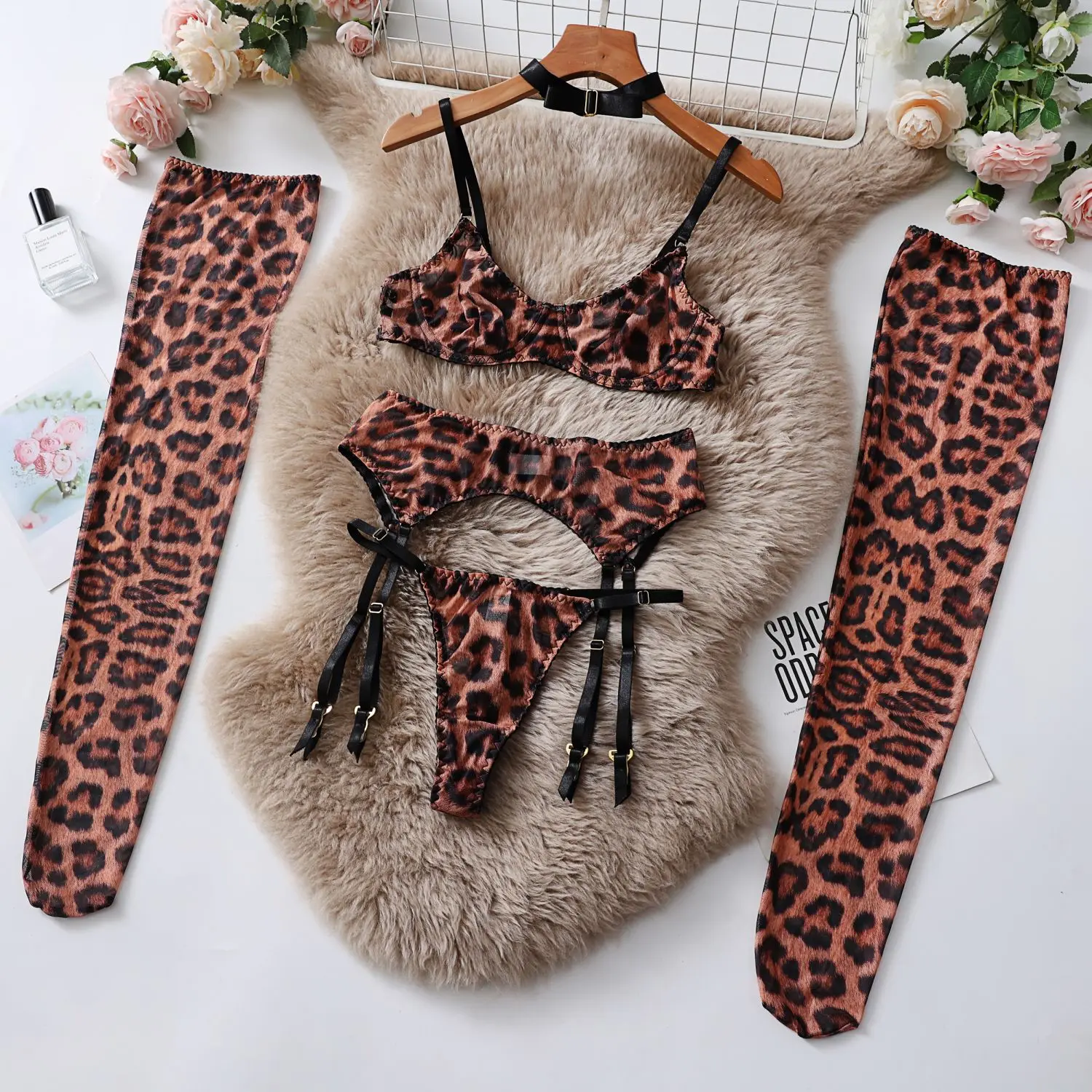 Lingerie léopard y soutien sans couture, sous-vêtements pour filles, jarretelles, ensembles exotiques, soutien-gorge Push Up fantaisie, ensembles assortis