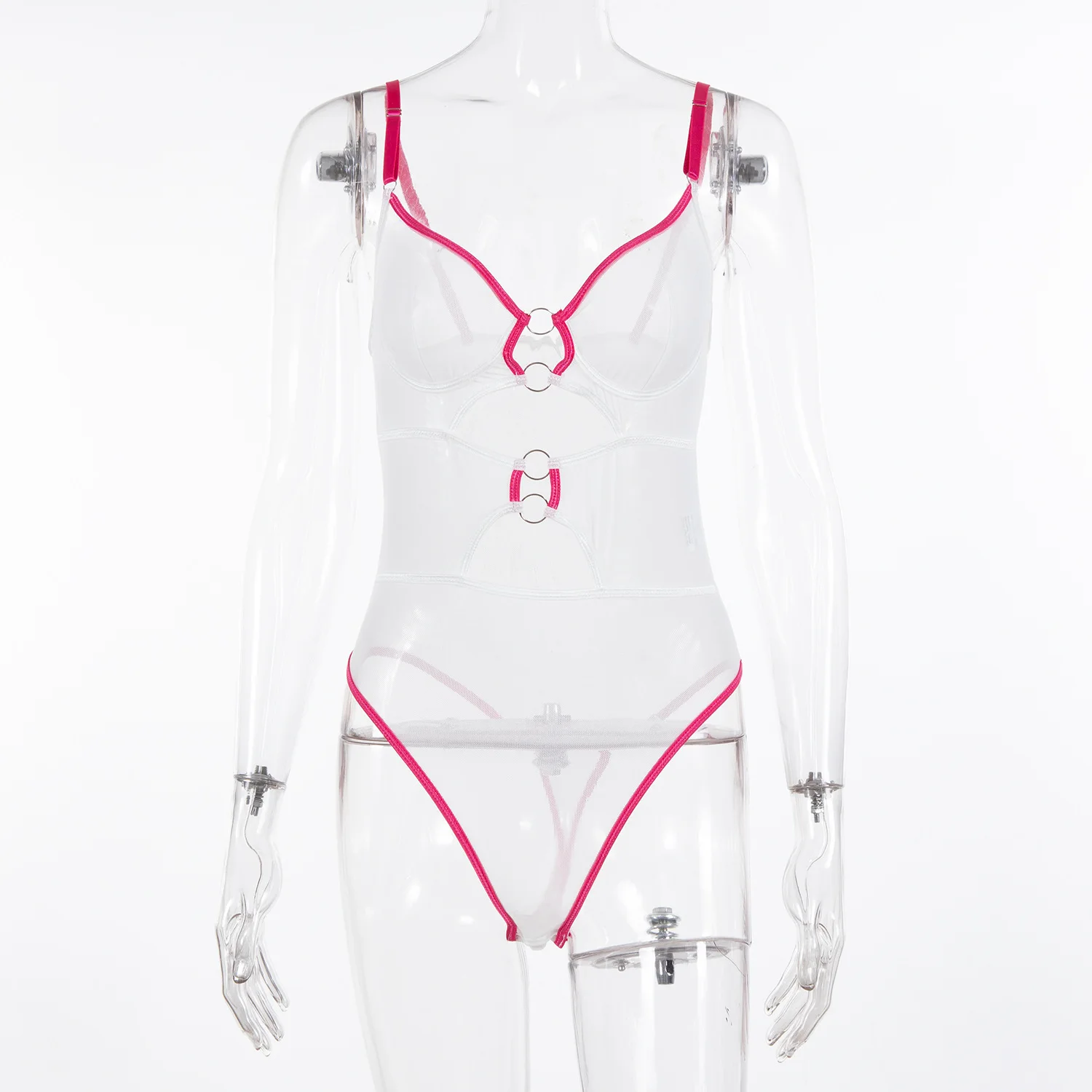 Ellolace Lingerie Lace Bodysuit Cut Out Sexy Tops Transparent One Pieces Bodys Sissy Crotchless Contrast Color Skin Custumes