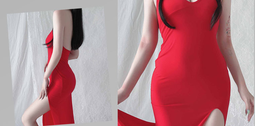 Jupe longue fendue transparente, lingerie sexy, décolleté en V profond