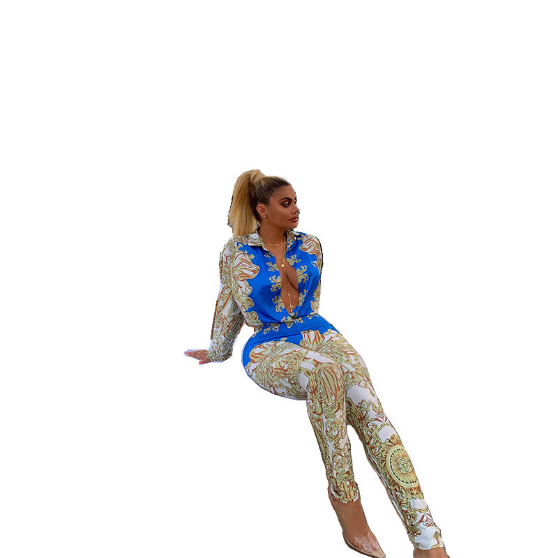 Ensemble deux pièces sexy à manches longues et impression européenne et américaine