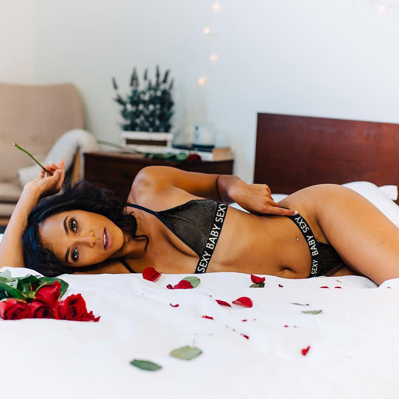 Ensemble de sous-vêtements sexy imprimé lettres perspective or et argent