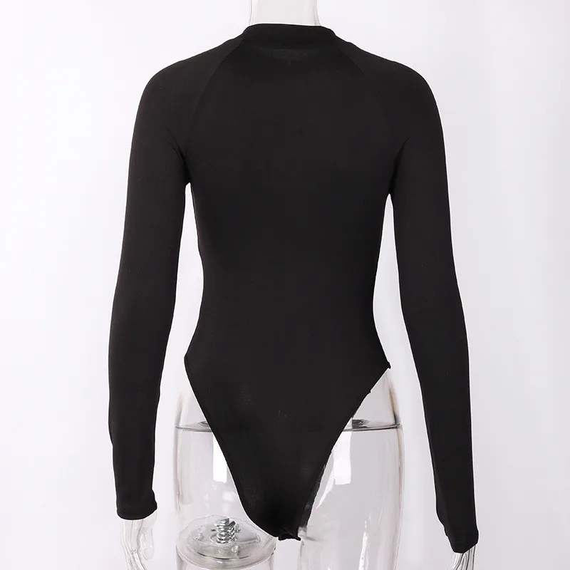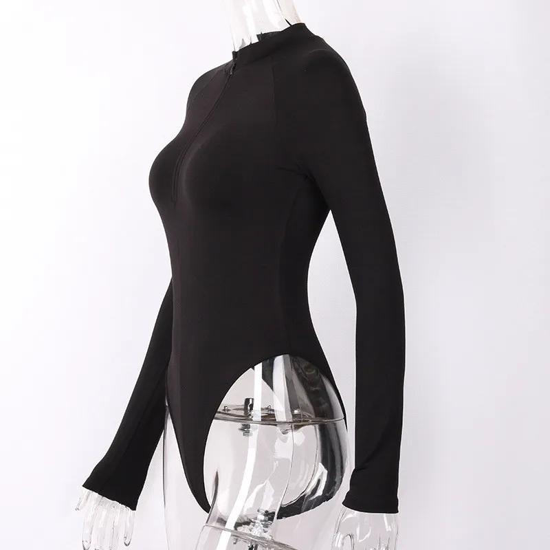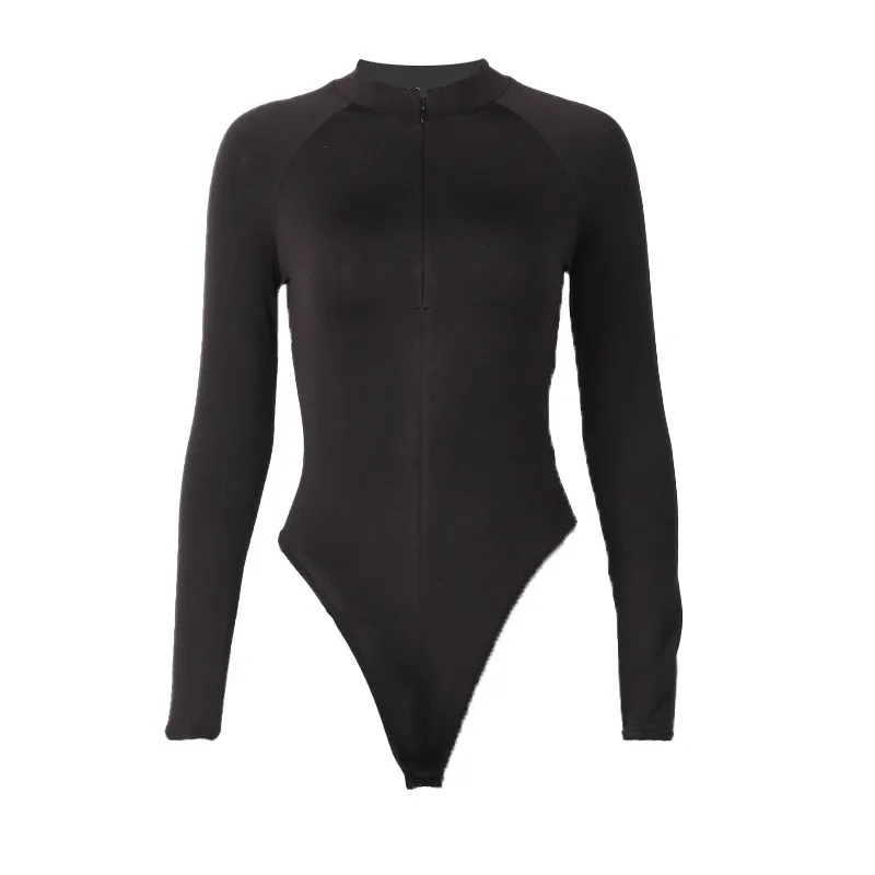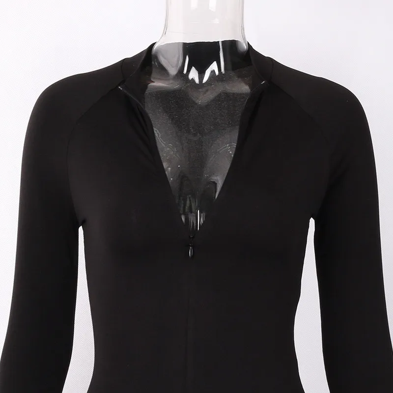 Huhugirl décontracté Fitness barboteuses femmes body manches longues combinaison à fermeture éclair régulière femme mode Streetwear tenues salopette