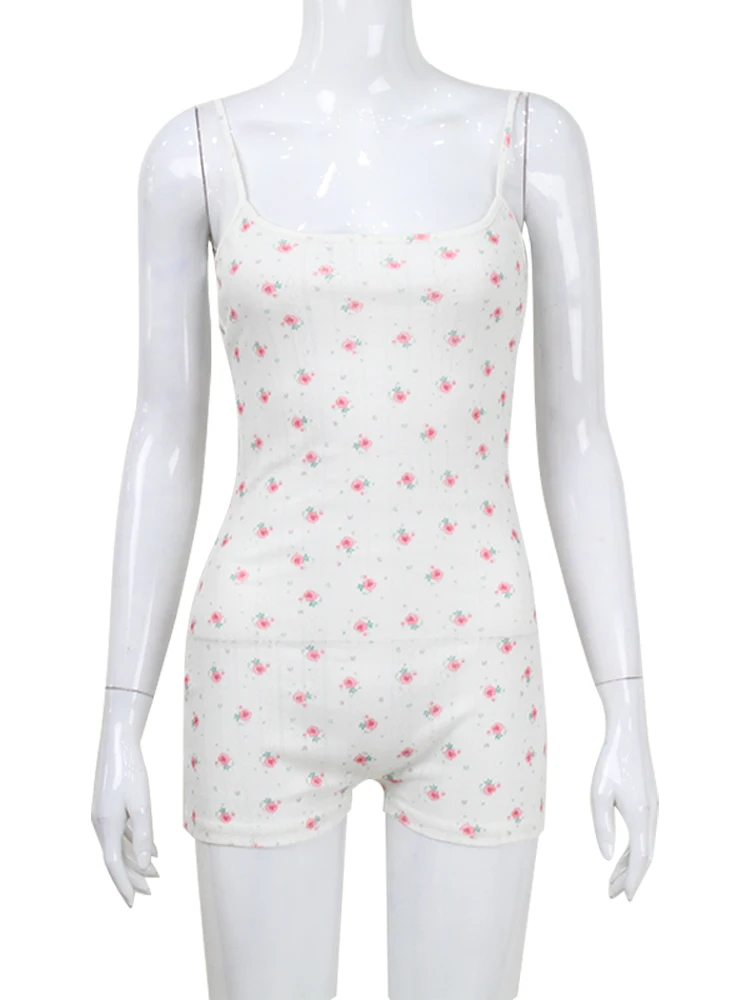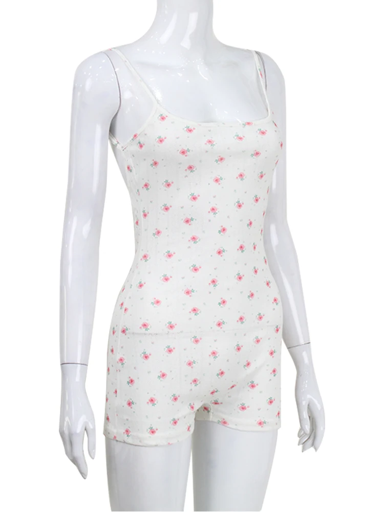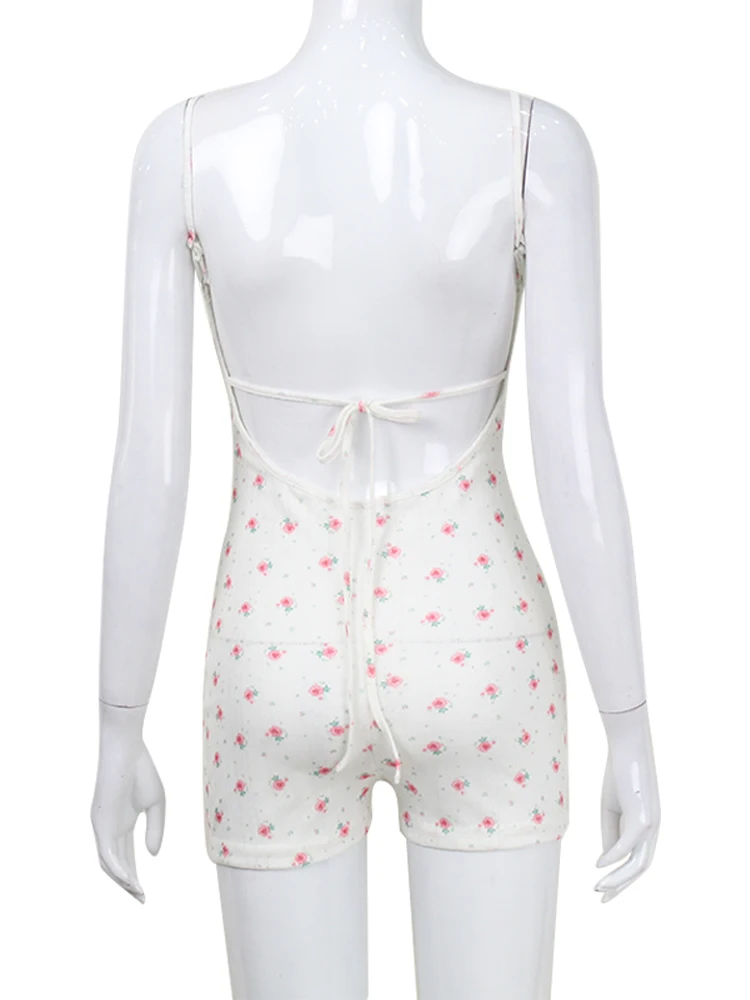Huhugirl imprimé fleur Sexy Club barboteuses femmes combinaisons mode dos évider mince gaine mignon body combishorts pour femme
