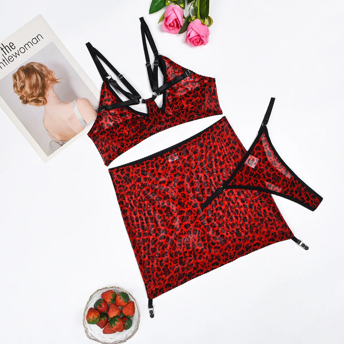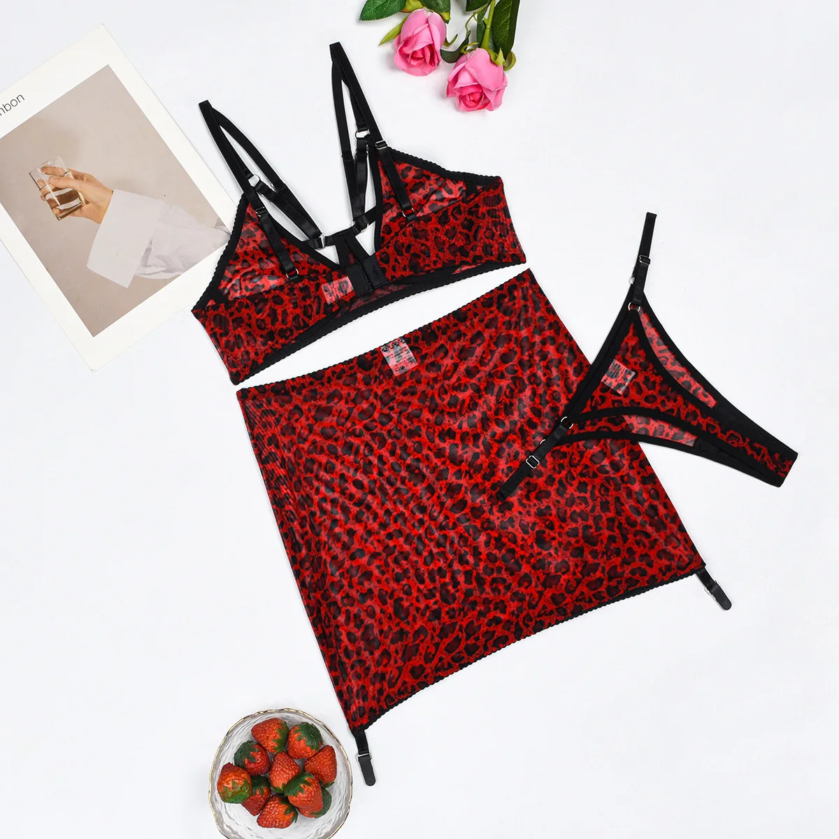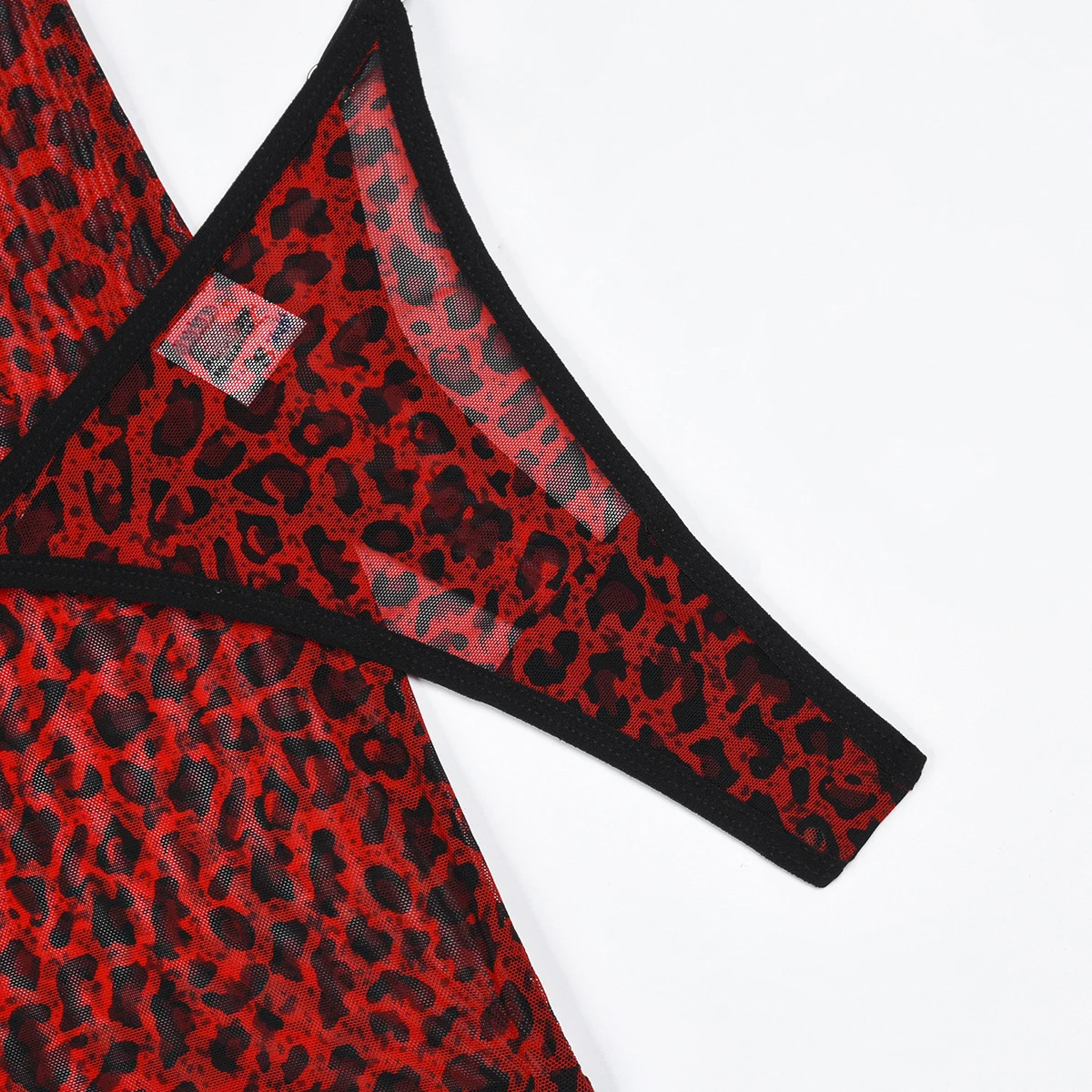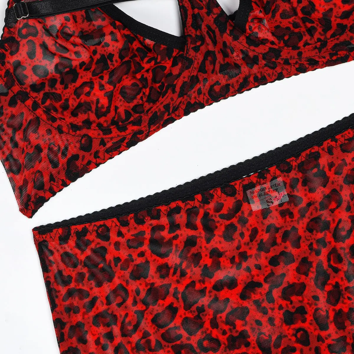 Tenue Lingerine Léopard Rouge Sous-Vêtements Noirs Dentelle Costume Transparent Costumes Sexy Bretelles Intime