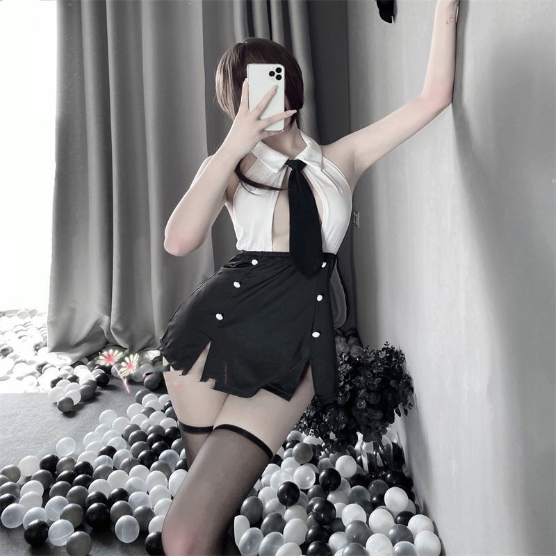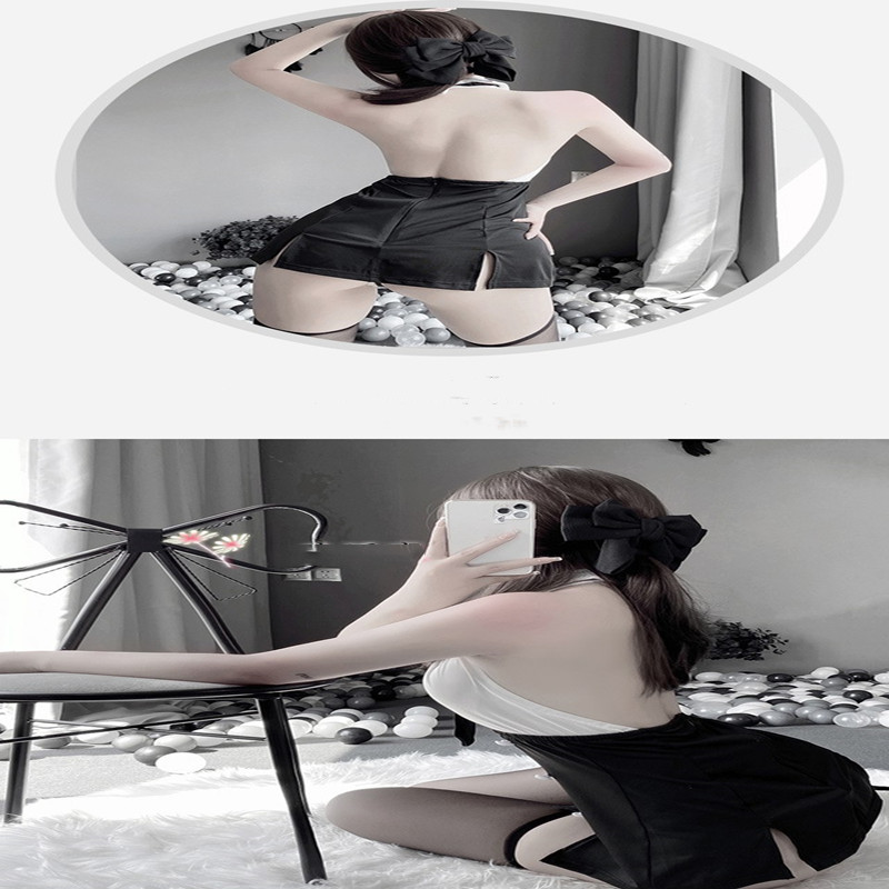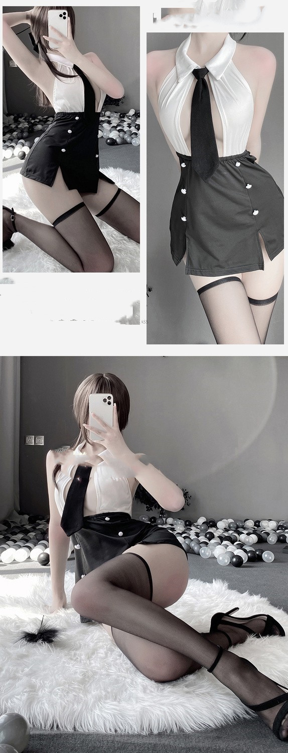 Lingerie chaude transparente petite poitrine fendue tenue de secrétaire