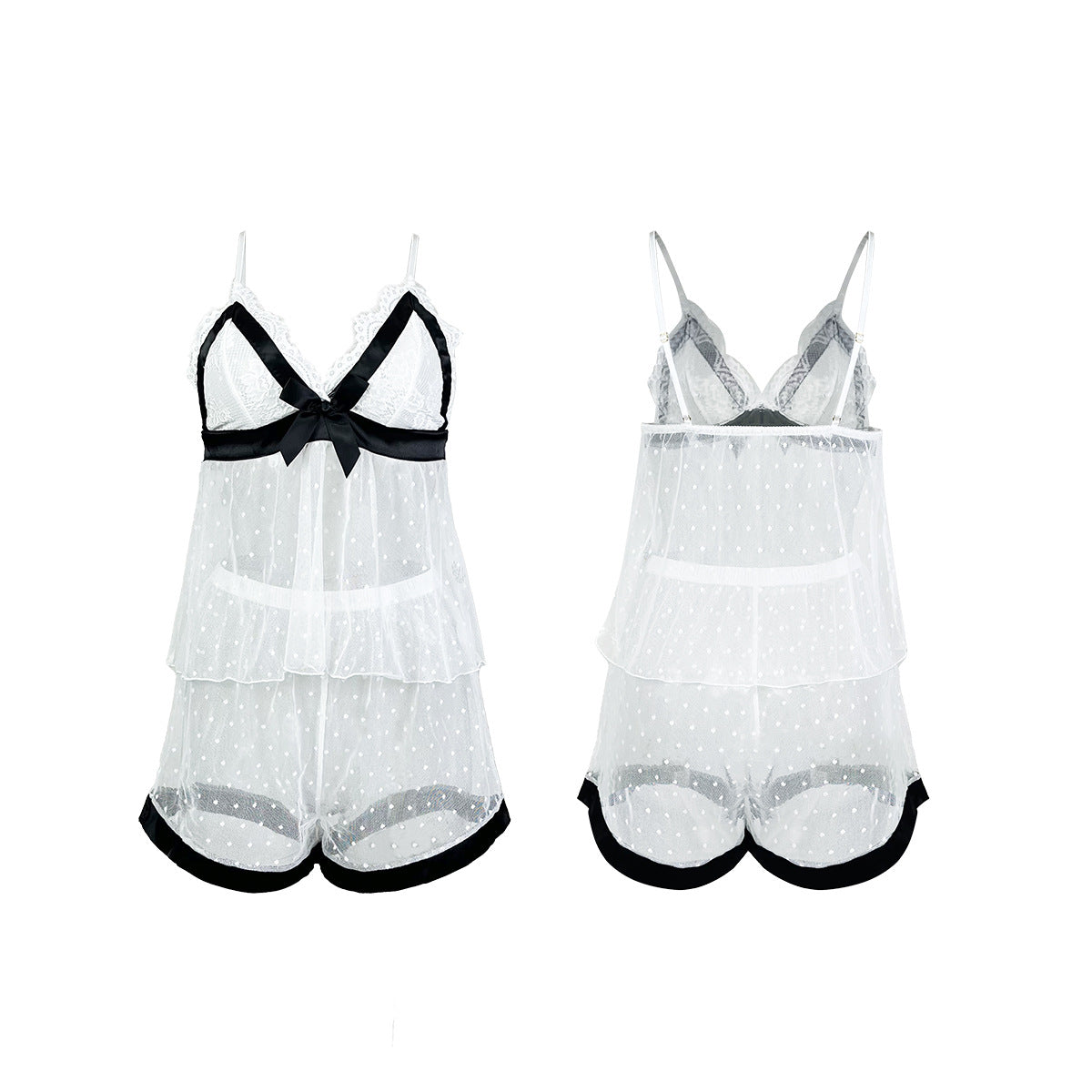Costume short à bretelles Sexy, couleur contrastée à pois, sous-vêtements pour femmes, vêtements de maison, pyjama