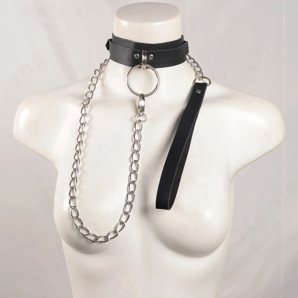 Collier ras du cou en cuir fait à la main, avec joint torique et chaîne, accessoire de jeu de rôle réglable, collier d'amour pour Couples