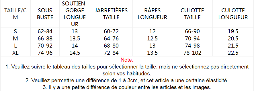 2. Veuillez vérifier attentivement le tableau des tailles avant d'acheter l'article. Si vous ne savez pas comment choisir la taille, veuillez contacter notre service client.