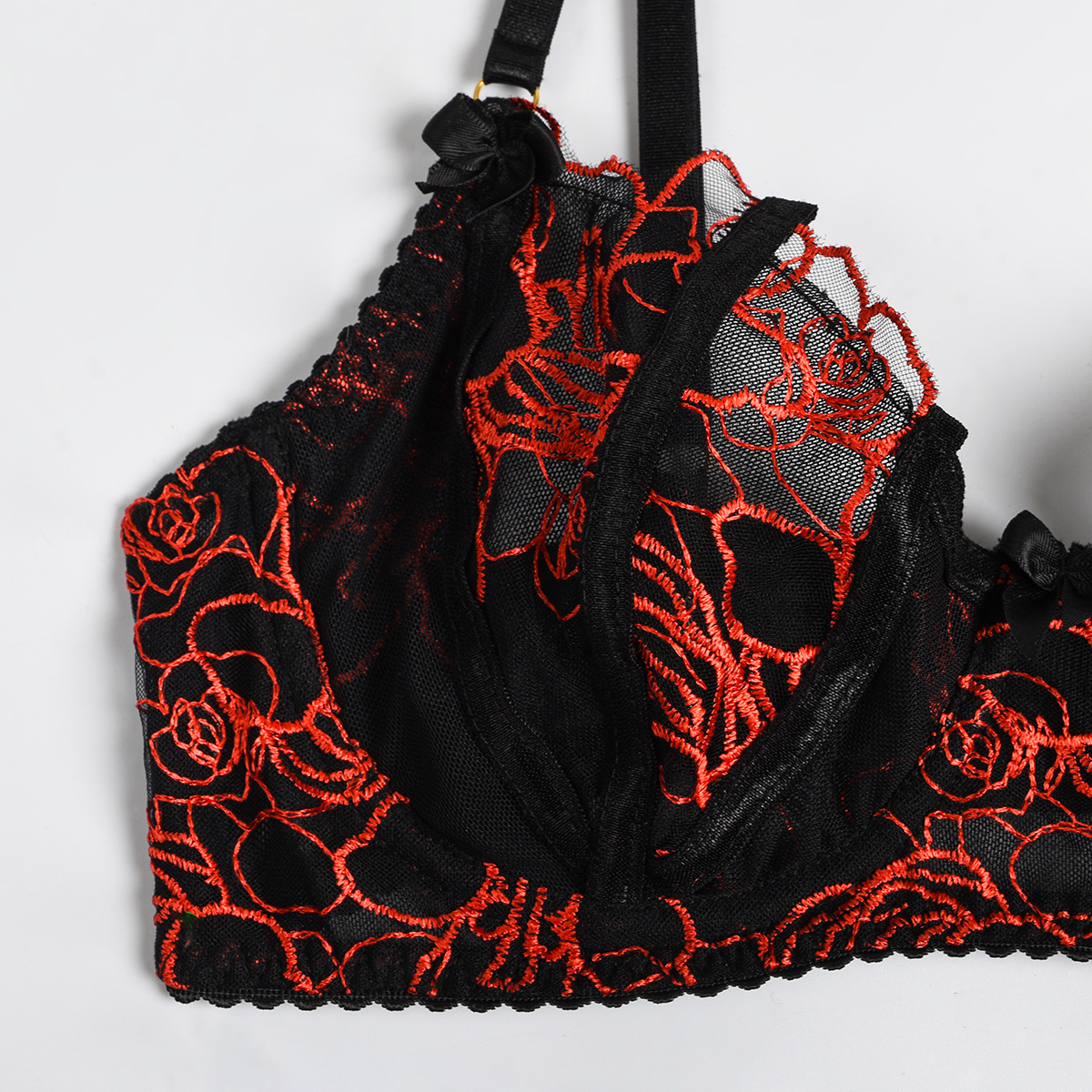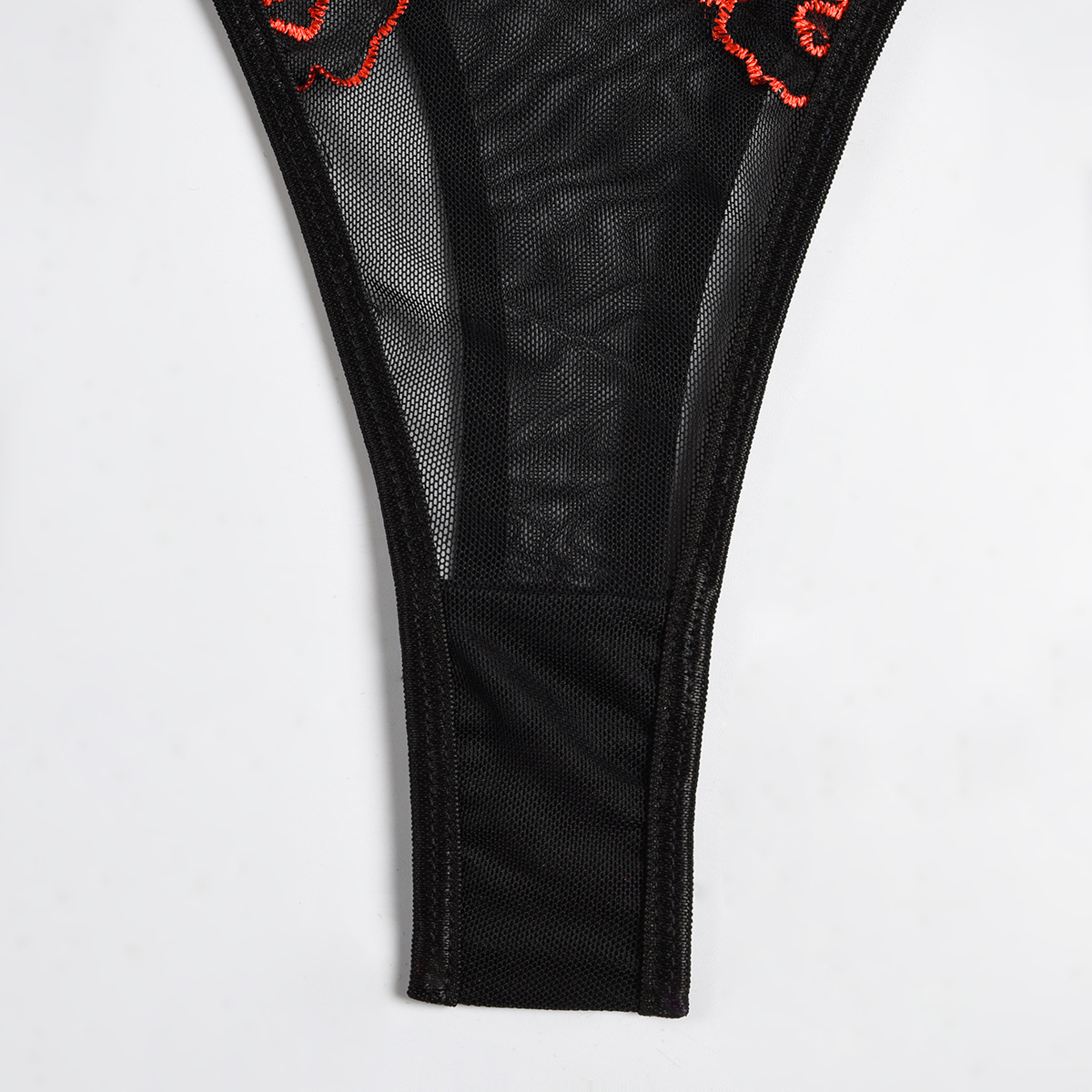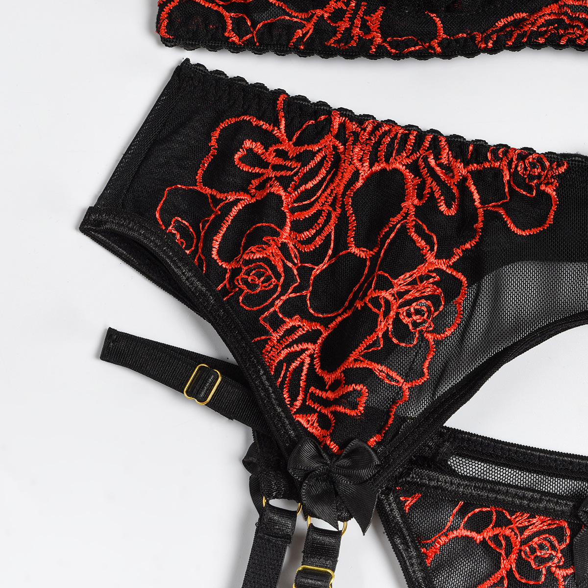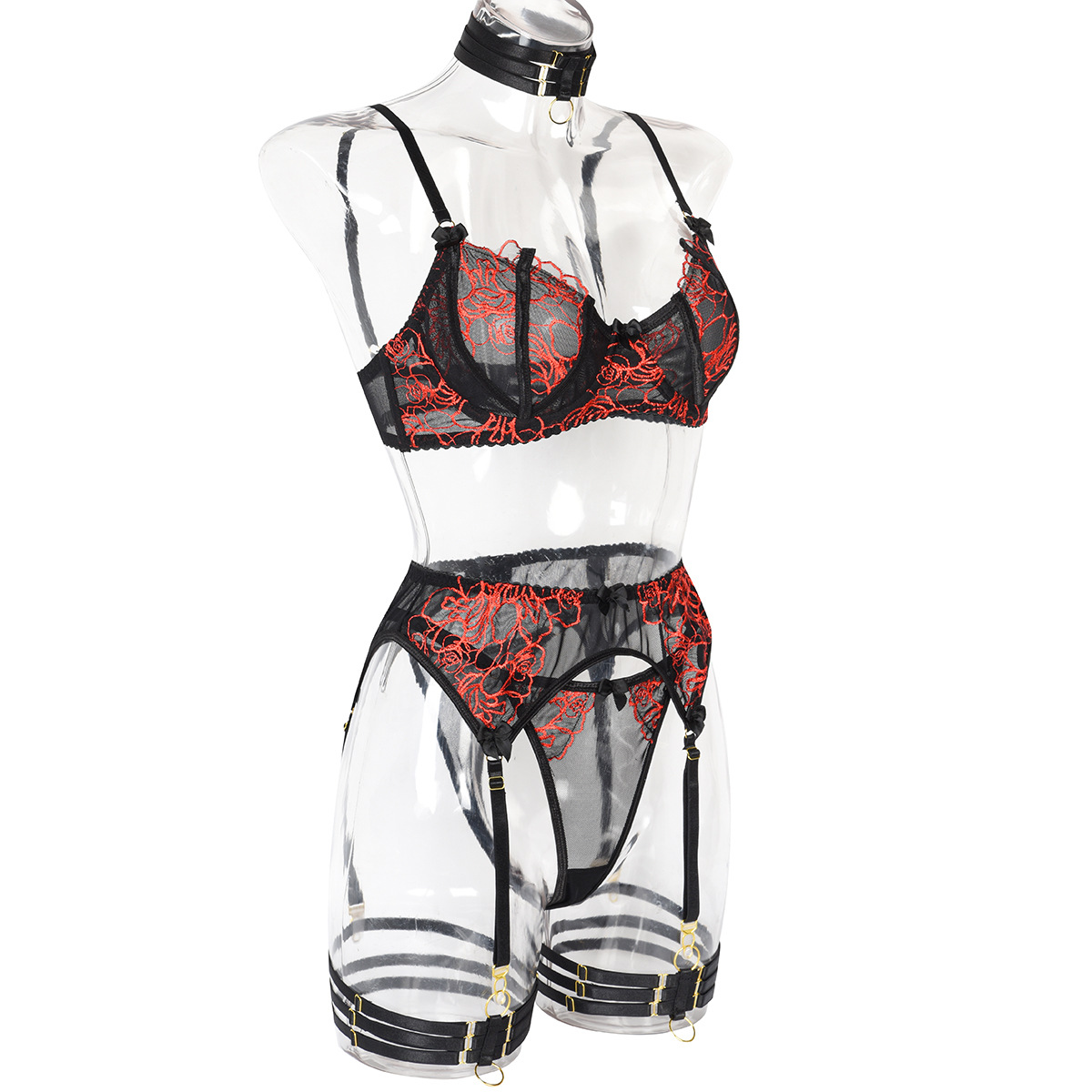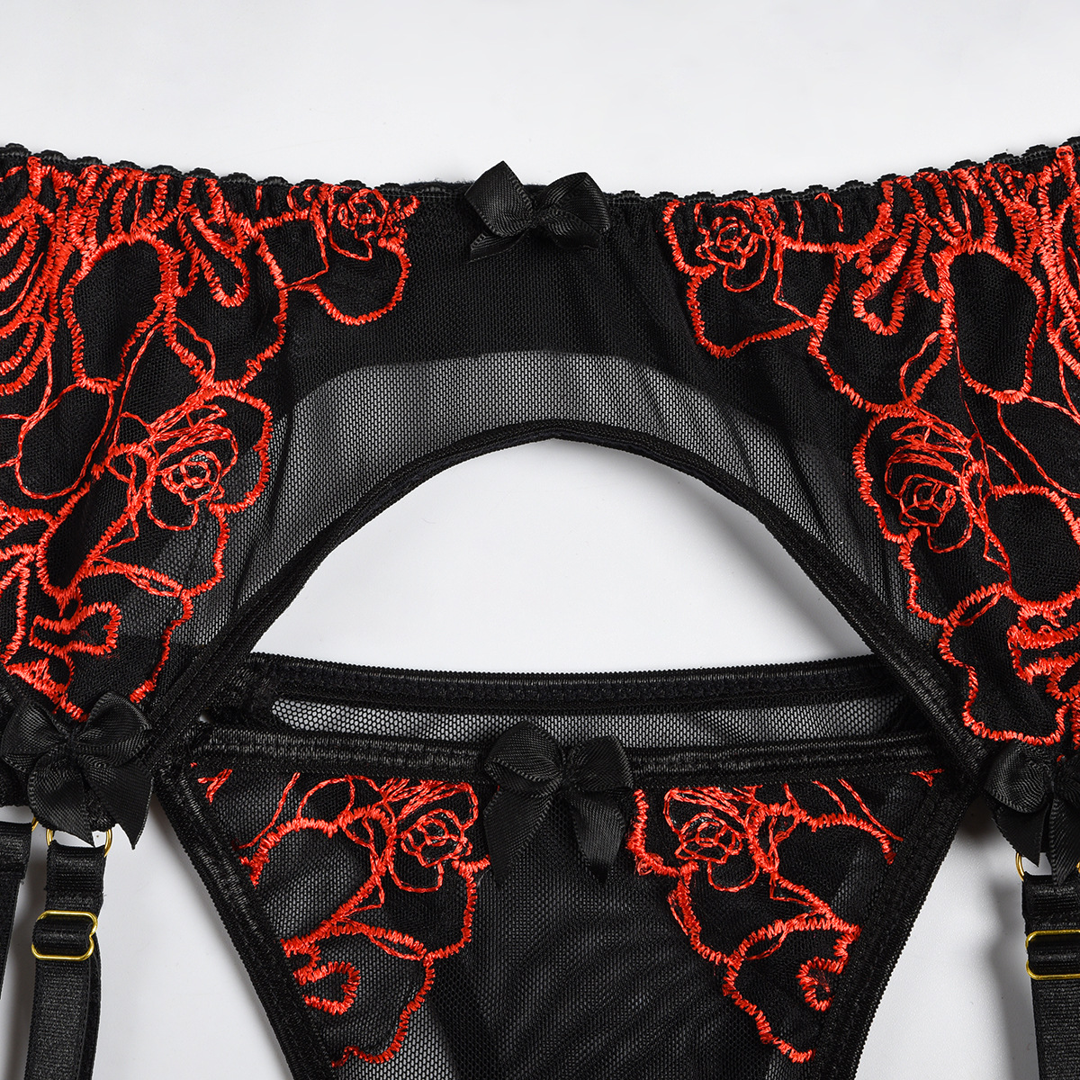 Sous-vêtements Sexy pour femmes, ensemble de 6 pièces avec broderie complexe de l'industrie lourde, avec collier, ensemble d'anneaux de jambe