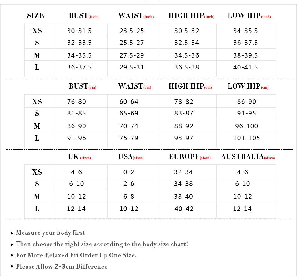 1. Les tailles asiatiques sont 1 à 2 tailles plus petites que les tailles européennes et américaines. Choisissez la taille au-dessus si votre taille est entre deux tailles. Veuillez permettre des différences de 2 à 3 cm en raison de la mesure manuelle.