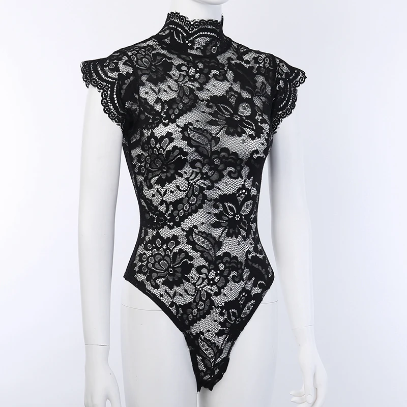 Sous-vêtements exotiques pour femmes, col roulé, body en dentelle transparente, nœud, sans manches, bandes croisées, robe de Lingerie élégante