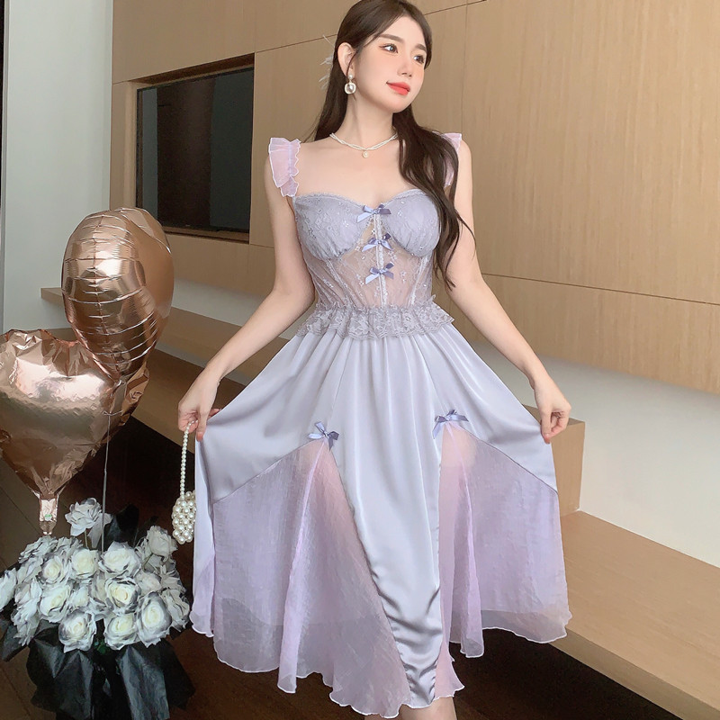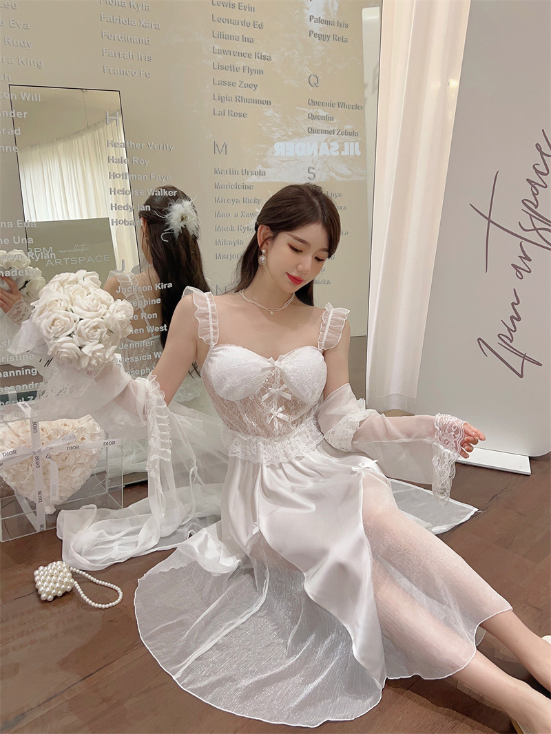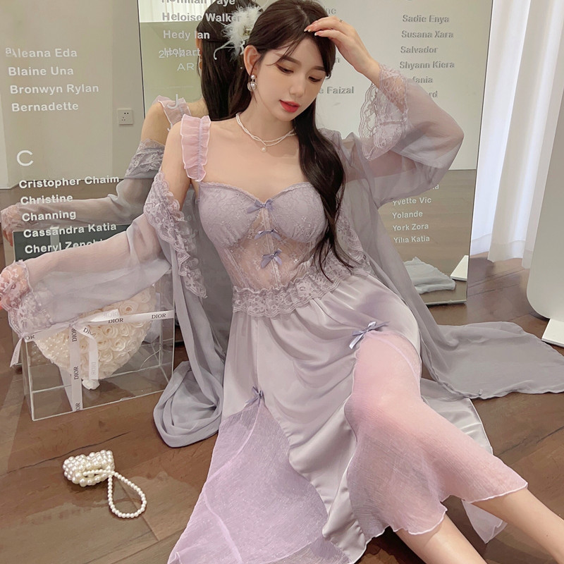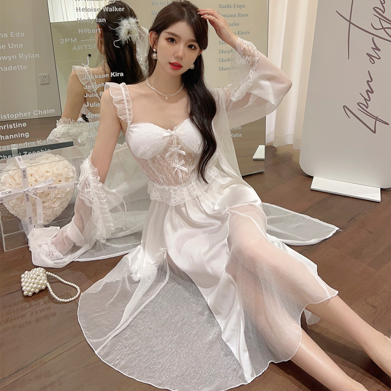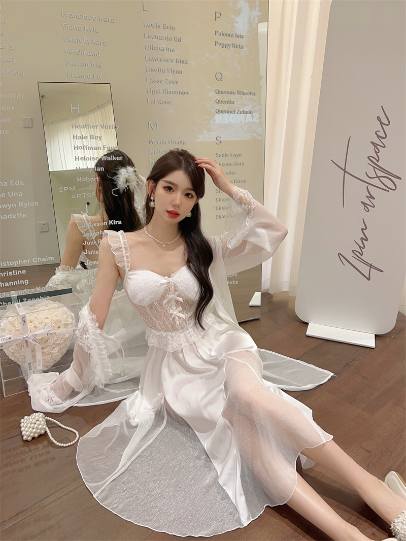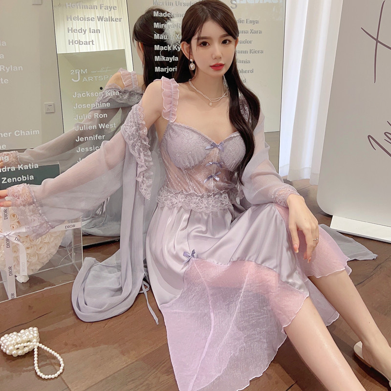 Ensemble deux pièces avec coussinet de poitrine pour femmes, chemise de nuit en soie glacée
