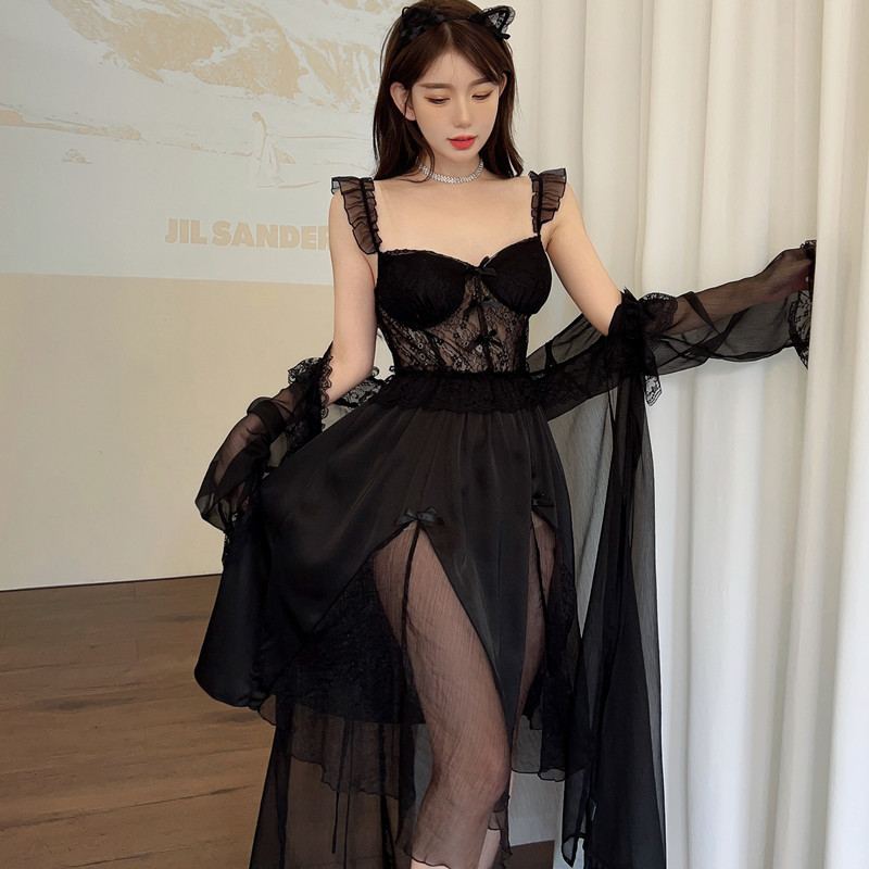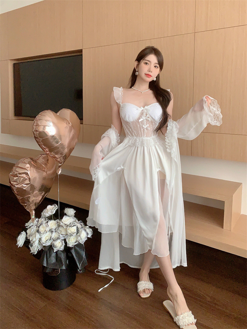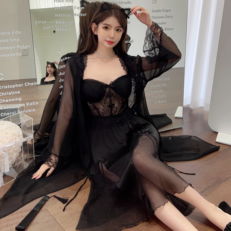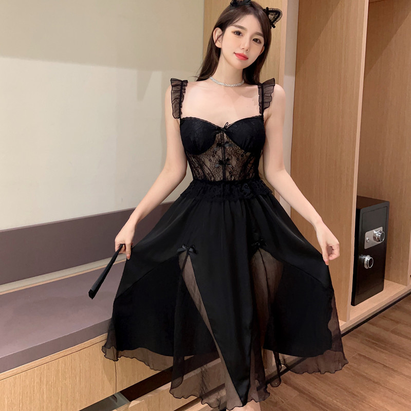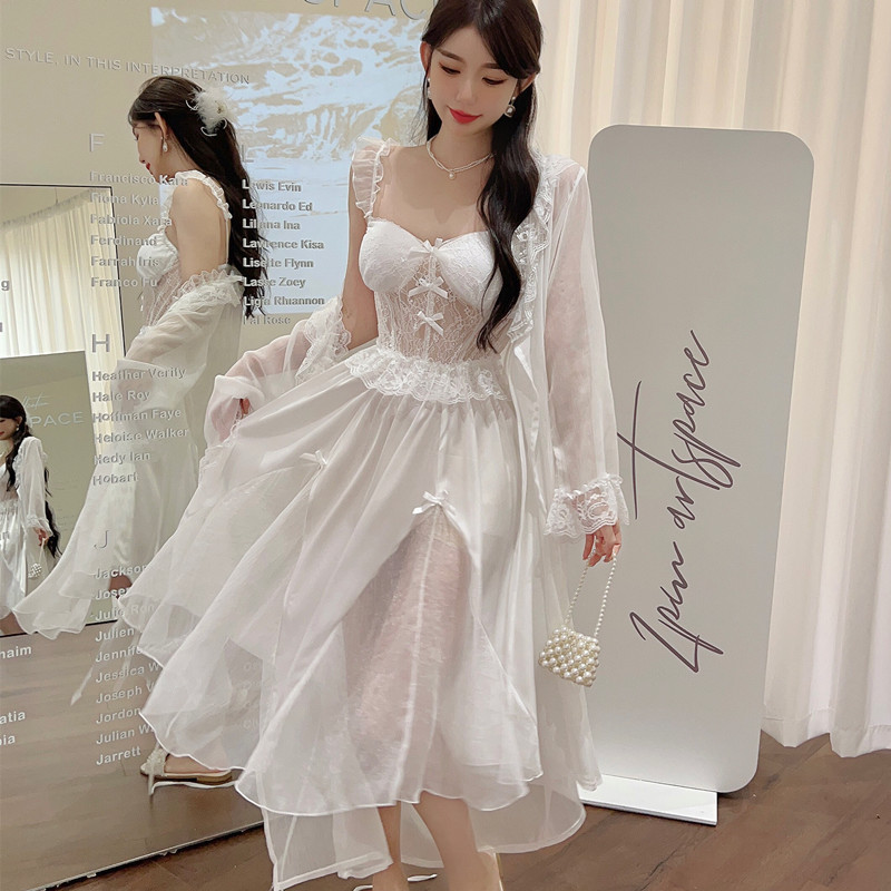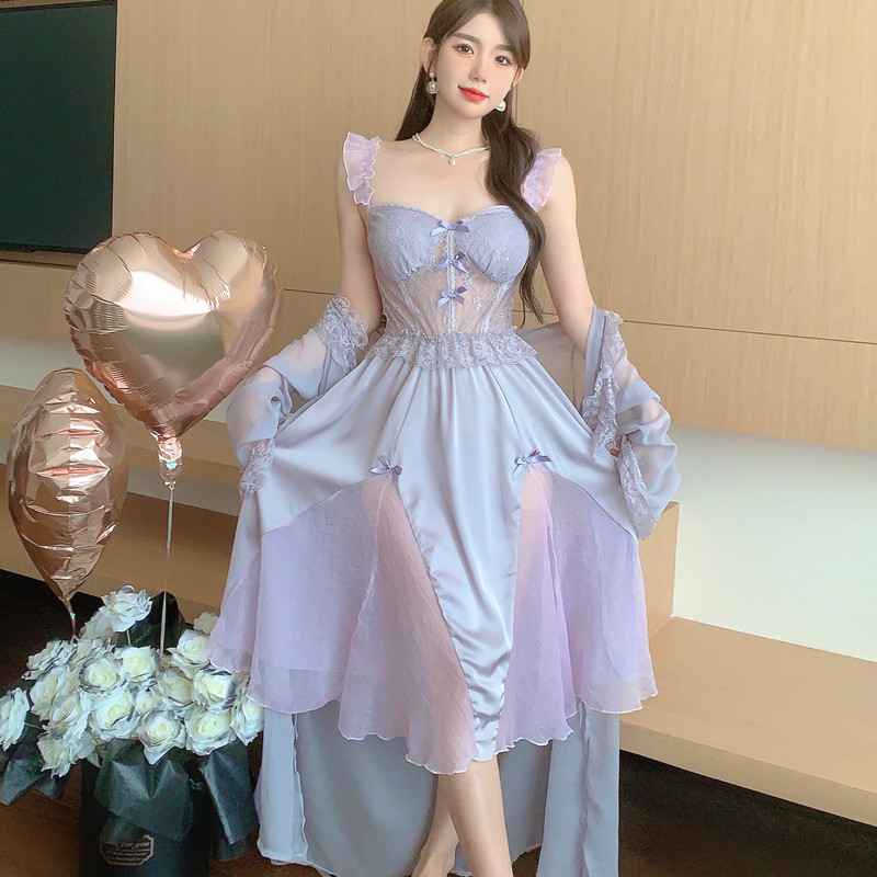 Ensemble deux pièces avec coussinet de poitrine pour femmes, chemise de nuit en soie glacée