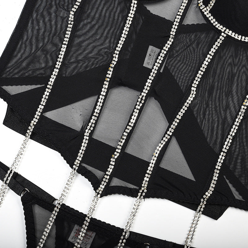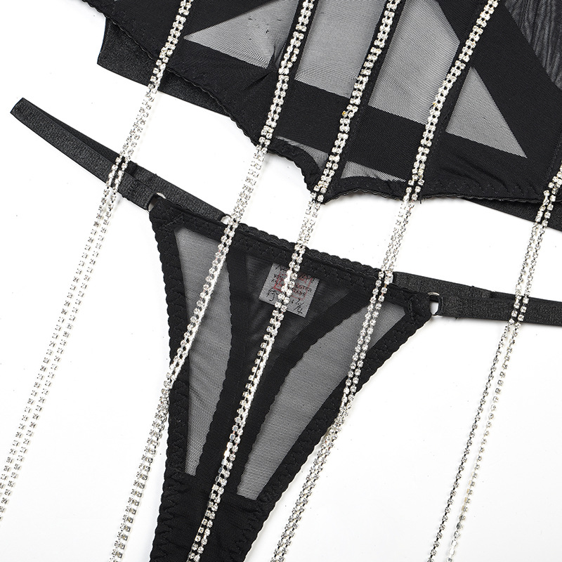 Ensemble deux pièces de lingerie en maille fine avec chaîne à la mode pour femmes