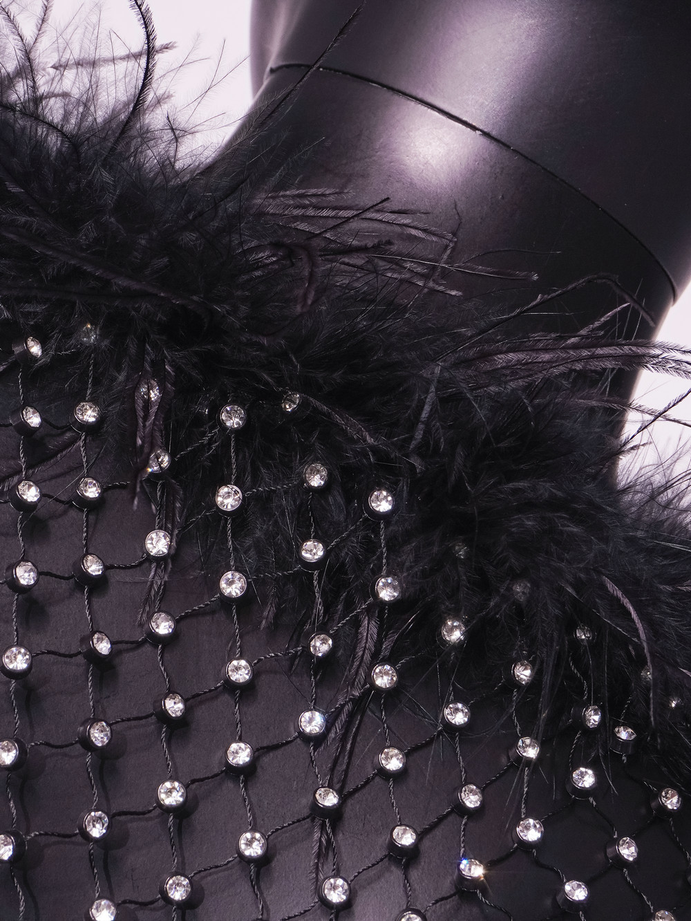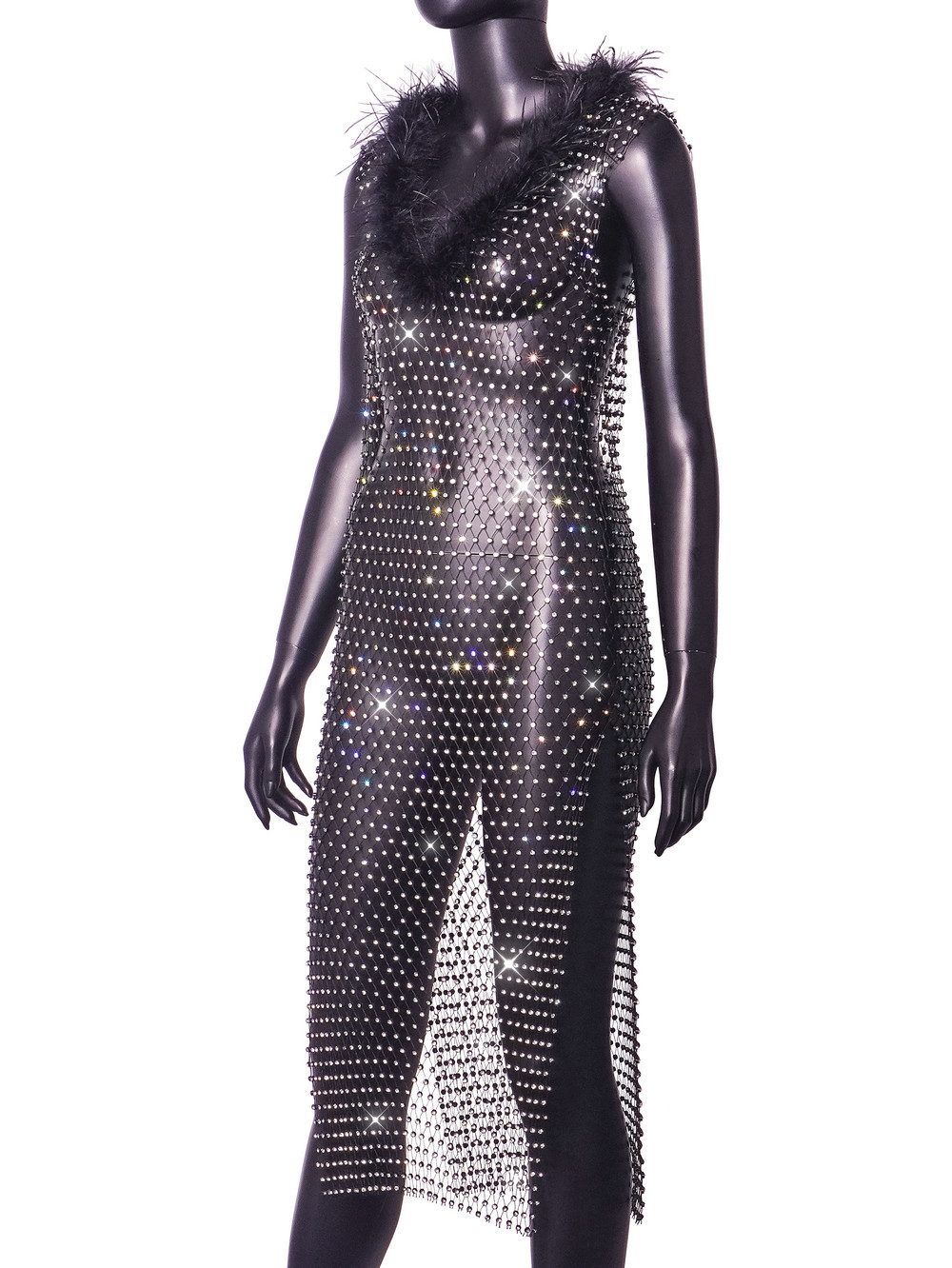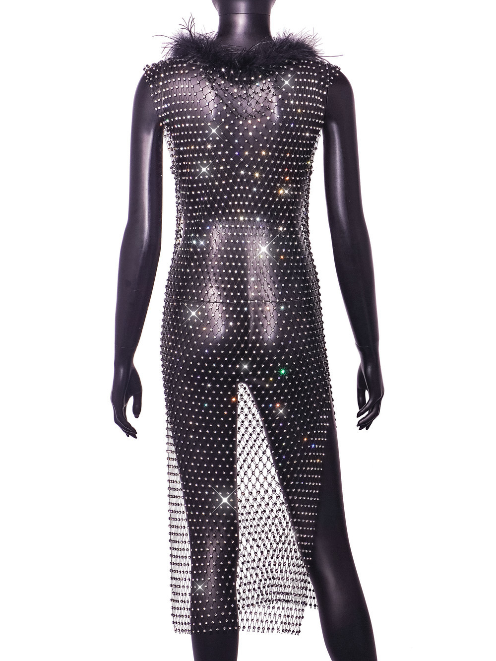 Amazon Women's Clothes Hot-selling Grid Rhinestone Fur Collar Dress