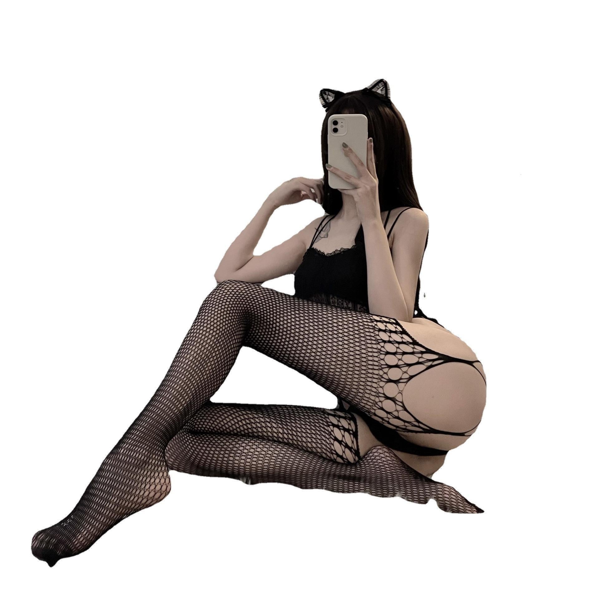 Black Silk Temptation One-piece No-show Stockings Mesh Stockings