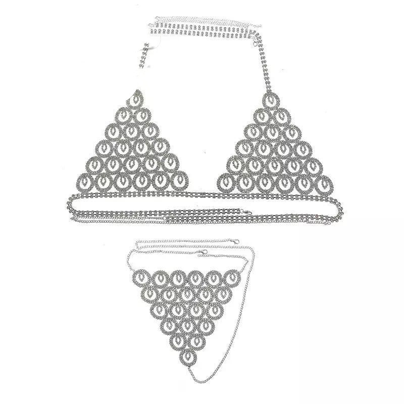 Body Chain Set Nightclub Rhinestone Bra Panties Costume Lingerie Jewelry