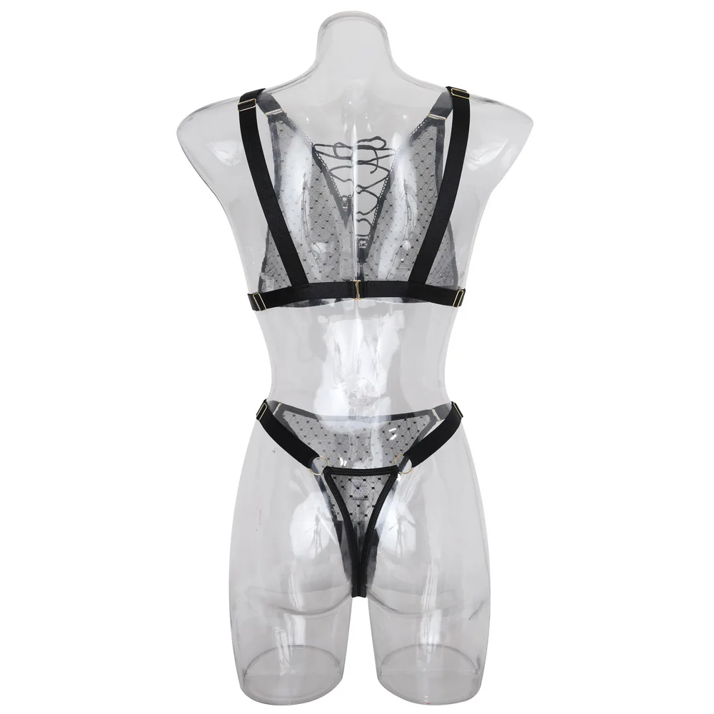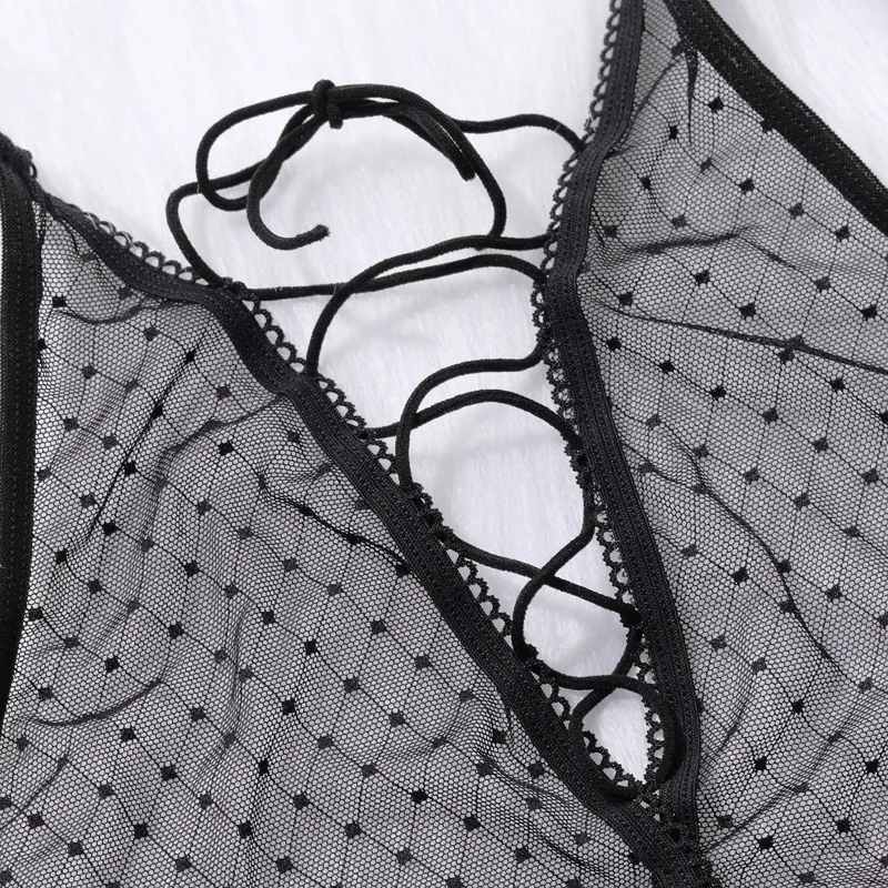 Checked Lingerie Transparent Desire Hot Girl Lace Up Underwear Without Censorship Back Night Bilizna Outfit
