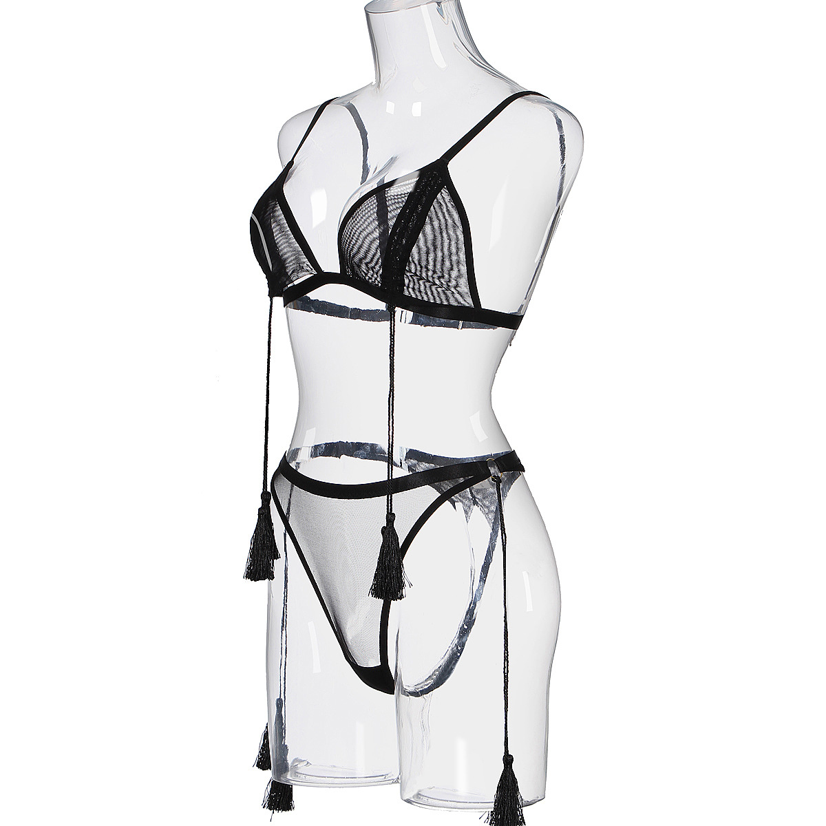 Comfortable Mesh Sexy Halter Strap Body Shaping Sexy Lingerie Four Piece Set